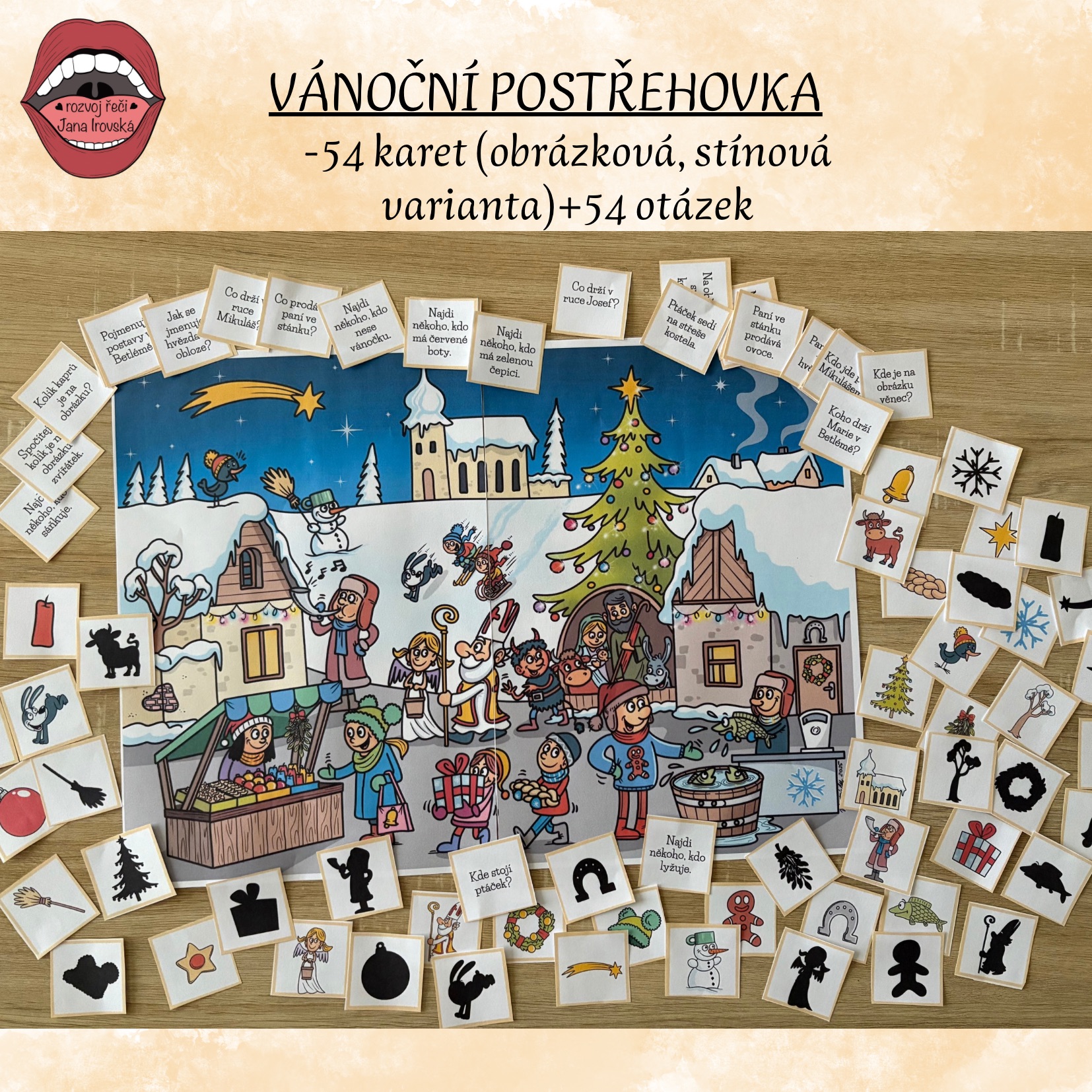 Soubor obsahuje obrázek městečka (formát 2xA4, 4xA4 nebo tiskneme A3) a 27 kartiček s obrázky a také stínovou variantu. Kdo dřív najde obrázek v městečku, nechá si ho. Vyhrává hráč, který má více kartiček. Jako bonus 54 kartiček s otázkami.