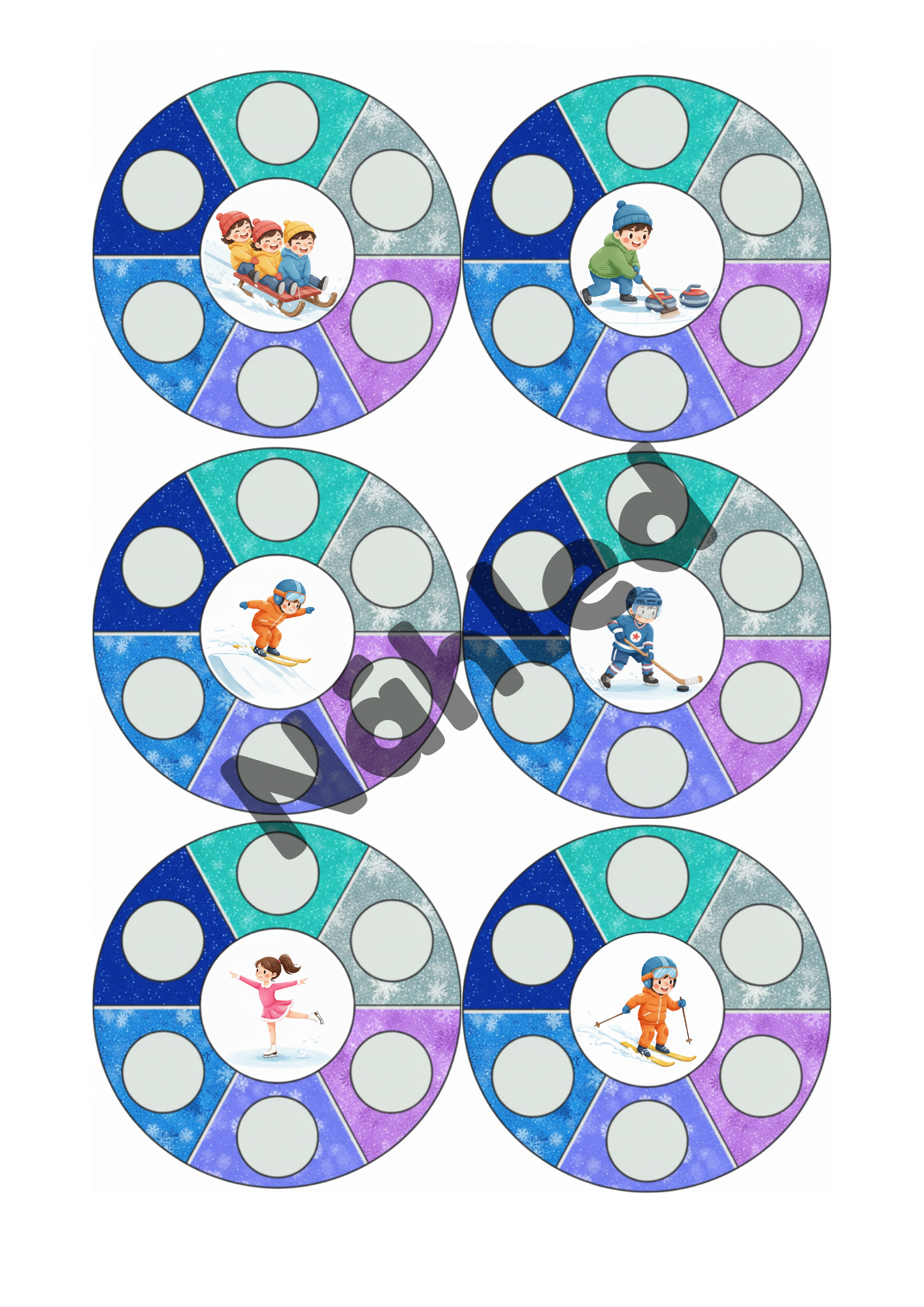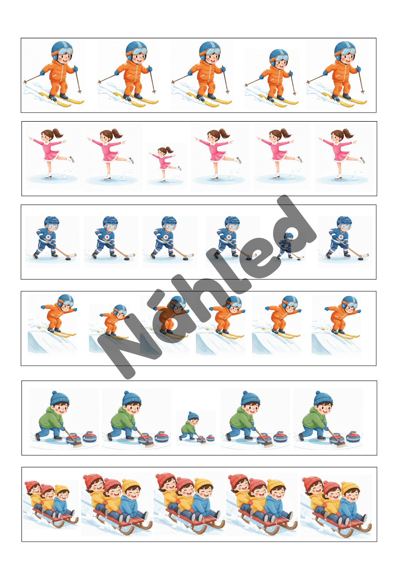 - demonstrační karty zimních sportů a činností (6 ks),