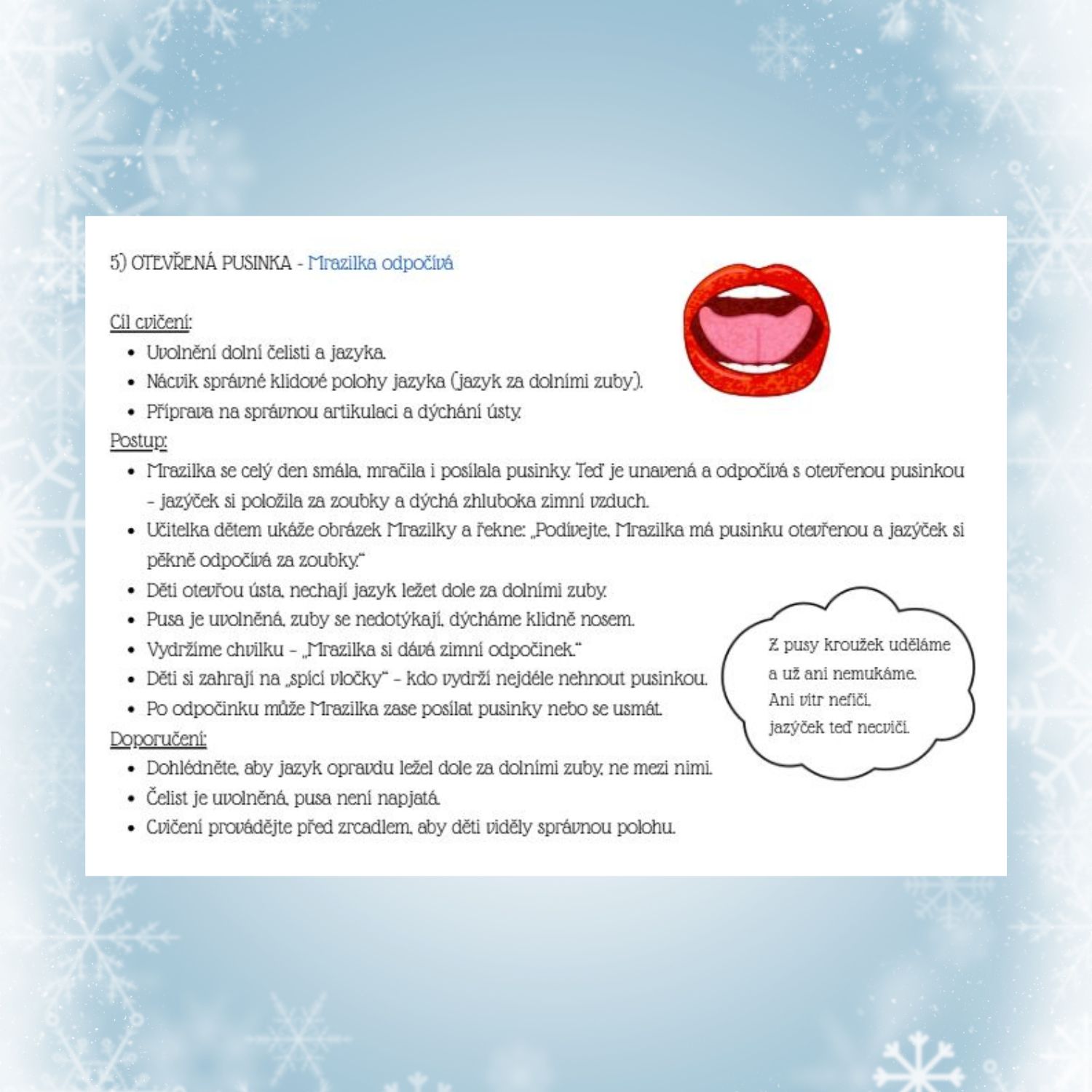 Zimní příběhová cvičení pro rozvoj pohyblivosti jazyka, rtů a čelistí.