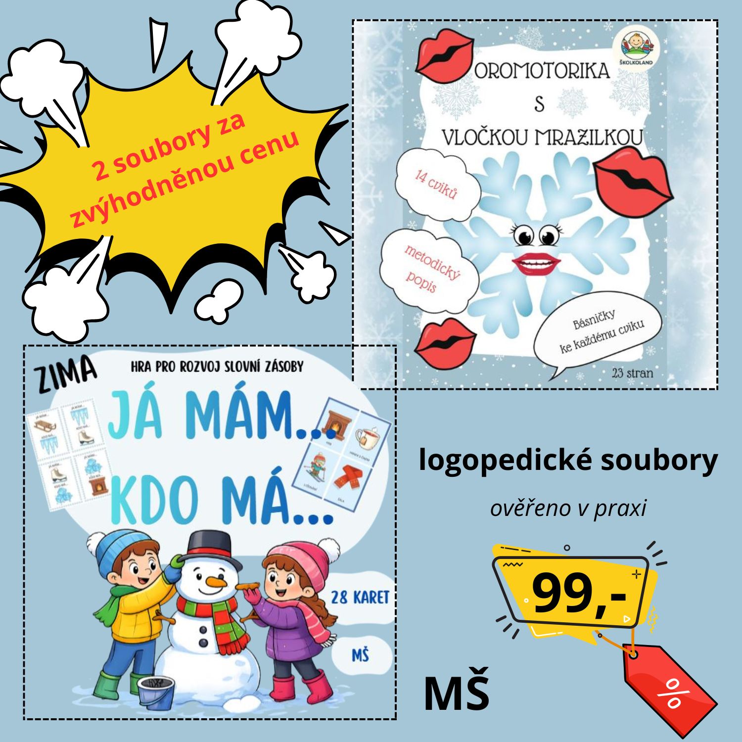Tento výhodný zimní set propojuje oromotorická cvičení s hravou řečovou aktivitou, kterou využijete každý den – při ranním kruhu, jazykových chvilkách i ve skupinové práci.