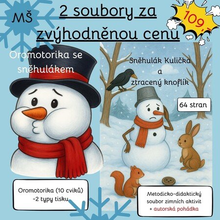 Tato zvýhodněná sada dvou nejoblíbenějších zimních souborů vám poskytne hotový program, se kterým zvládnete ranní kruh, řízenou činnost i individuální podporu řeči bez složité přípravy.