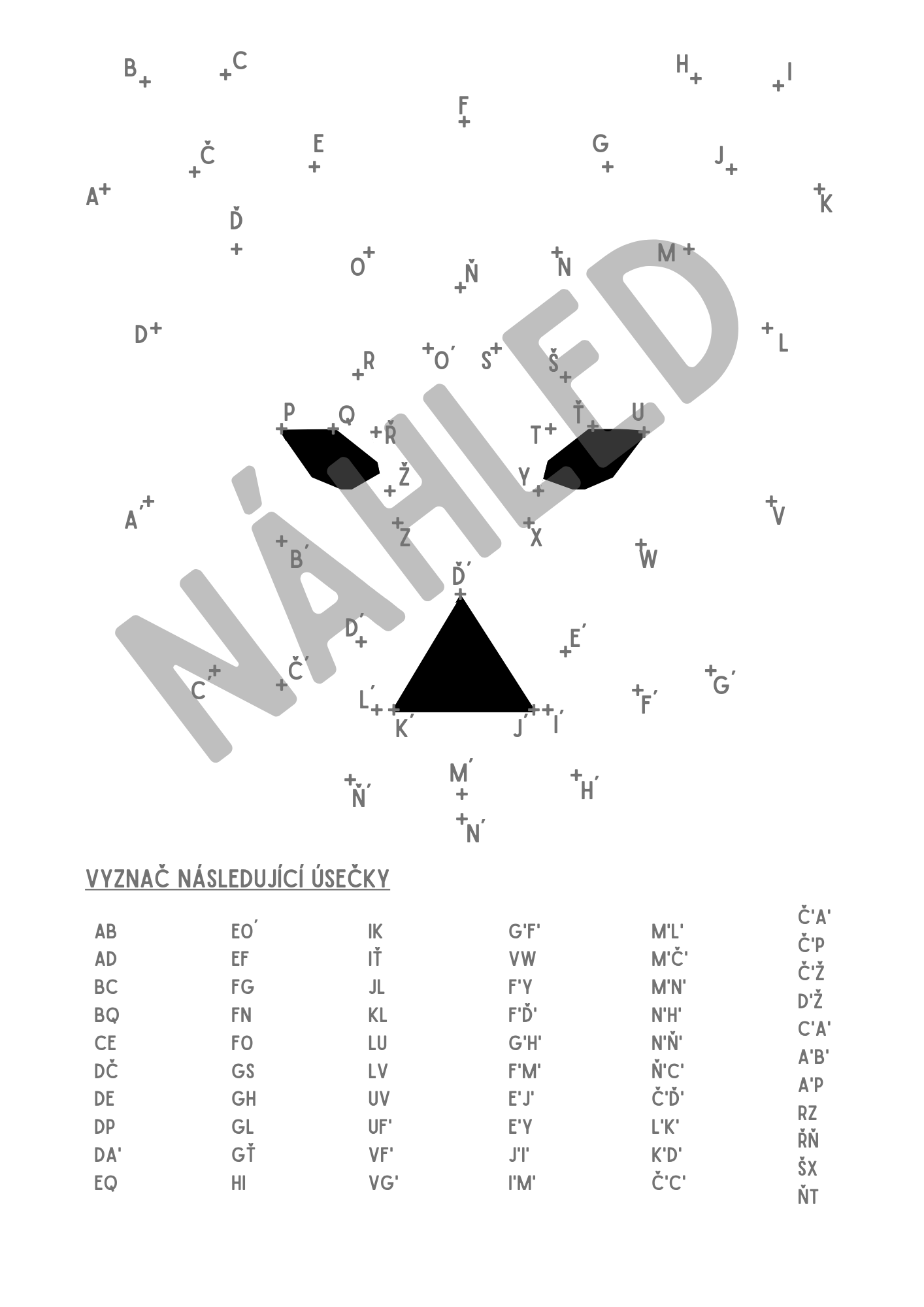 - Děti rýsují úsečky podle seznamu. Tyto pracovní listy slouží jako procvičování tenkých a přesných čar.