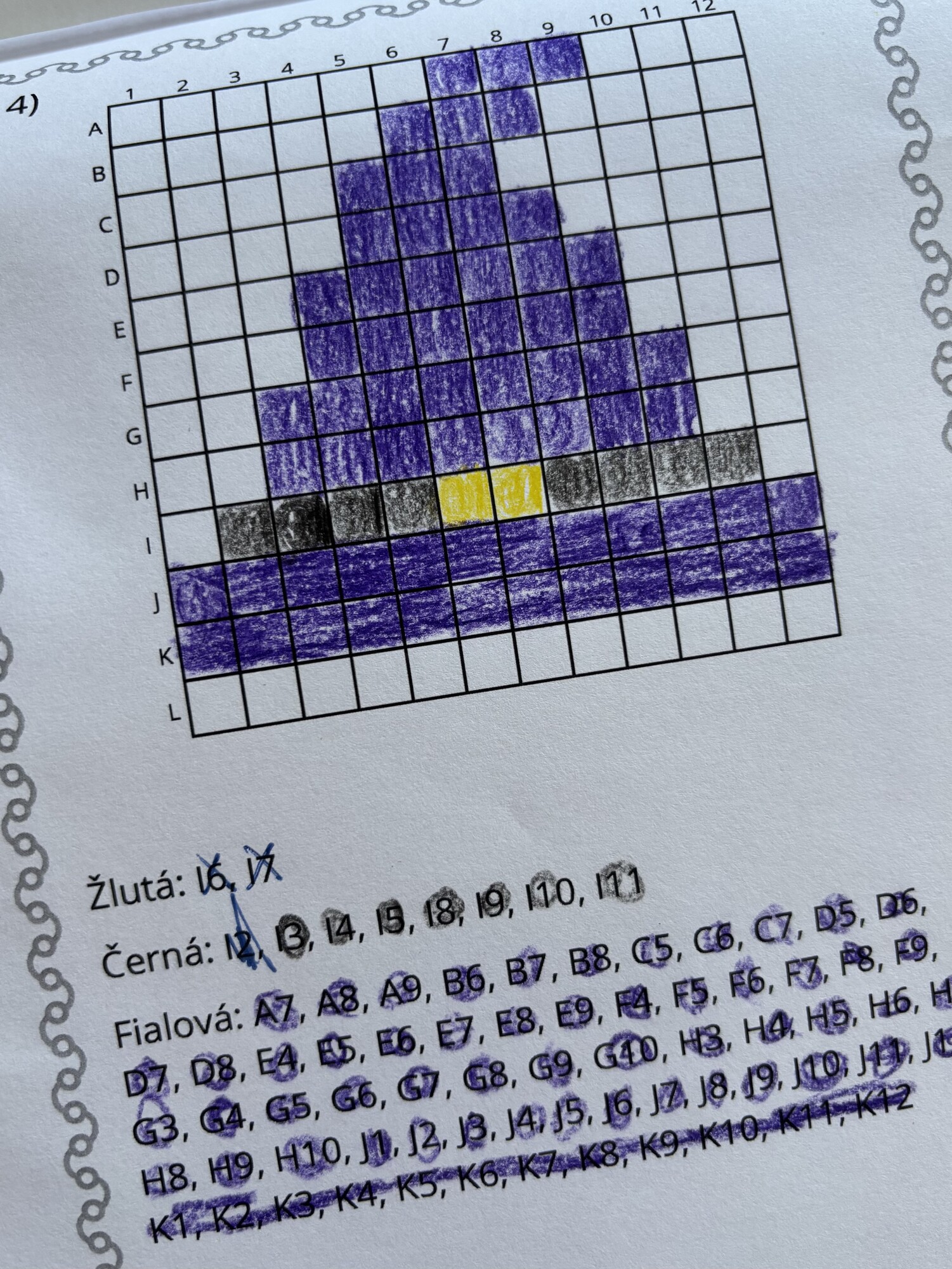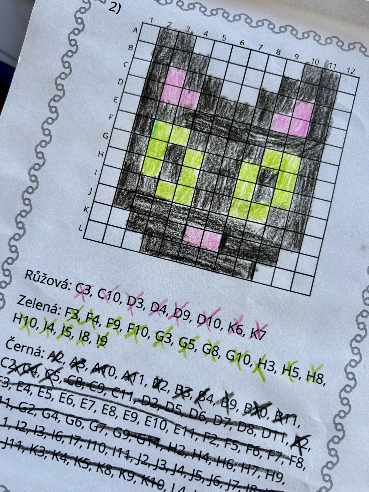 Pro lepší orientaci doporučuji, aby si žáci škrtli souřadnici políčka, které už vybarvili.