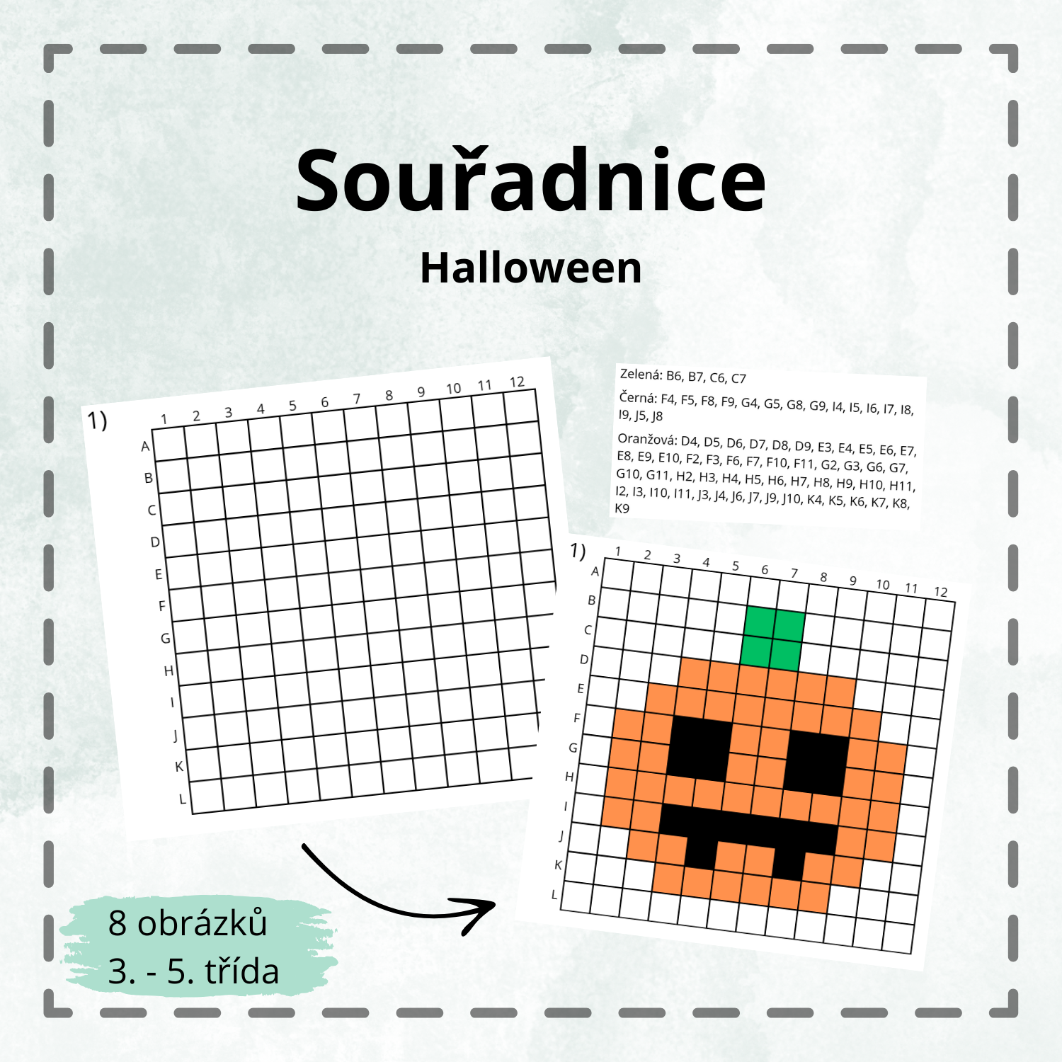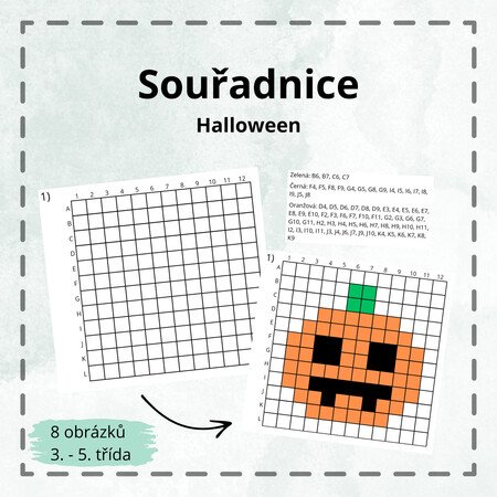 Žáci za pomoci souřadnic vybarvují políčka danou barvou. Výsledkem je obrázek s tematikou Halloweenu.