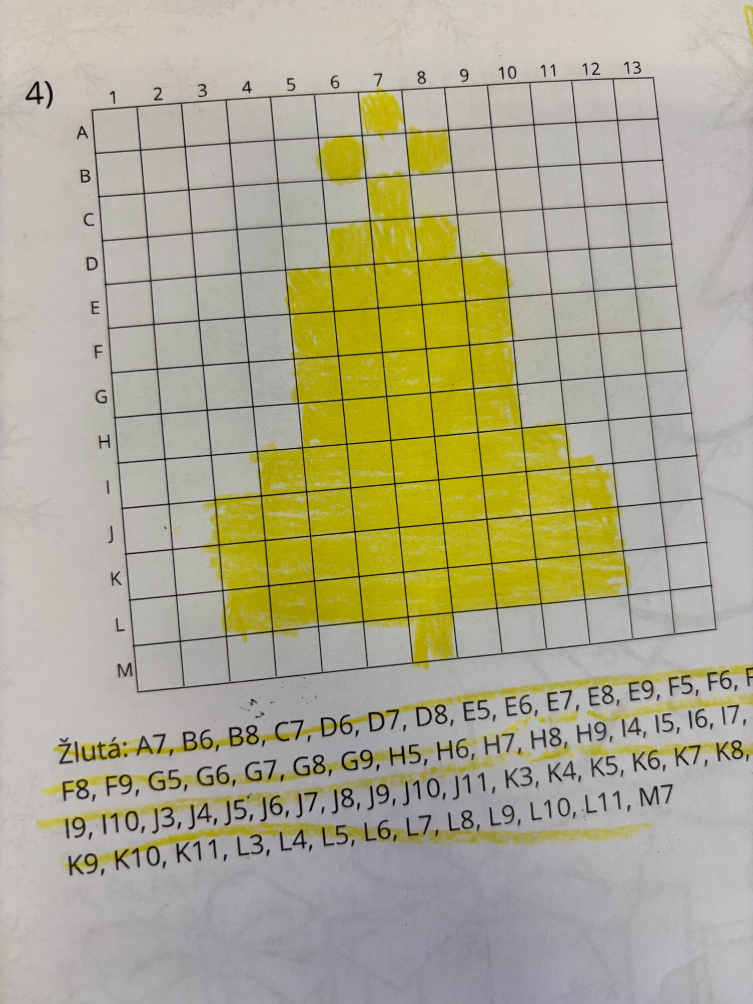 Pro lepší orientaci doporučuji, aby si žáci škrtli souřadnici políčka, které už vybarvili.