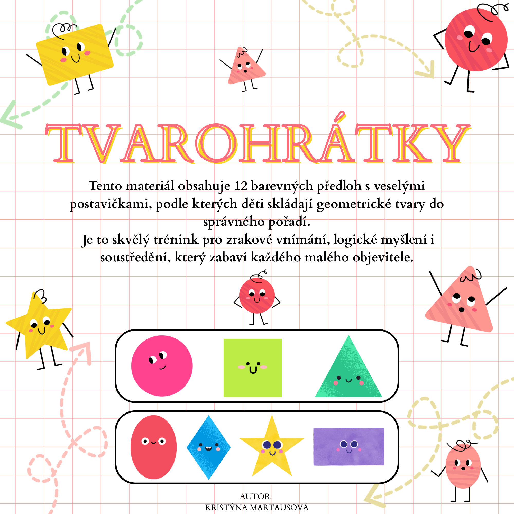 Hravý materiál pro malé objevitele, který promění učení geometrie v barevné dobrodružství! Tato aktivita je navržena tak, aby děti bavila a zároveň rozvíjela jejich logické myšlení a pozornost.