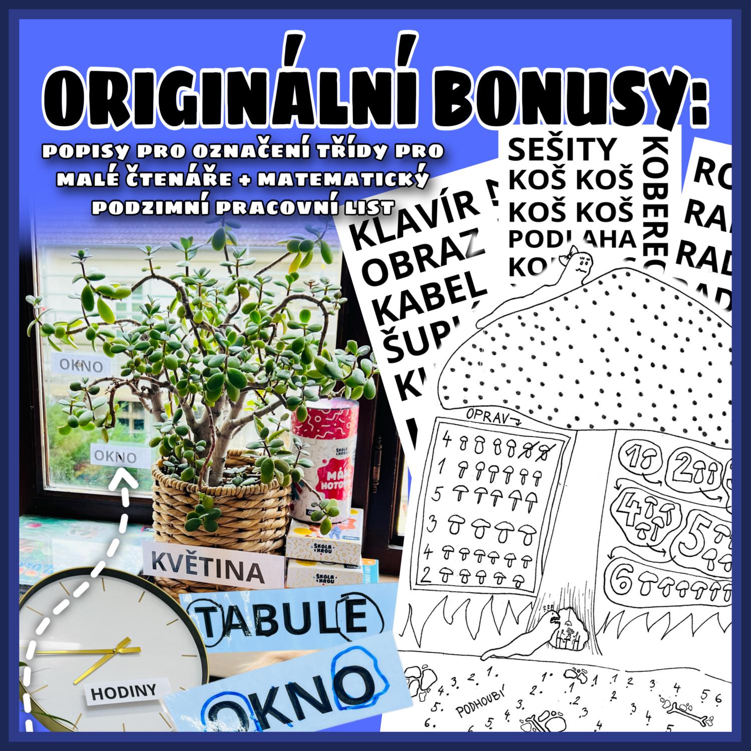 - Součástí jsou i inspirace navíc – bonusy a tipy na rozvoj čtenářství, tvořivé bonusy a pracovní list s tématikou hub do matematiky.
