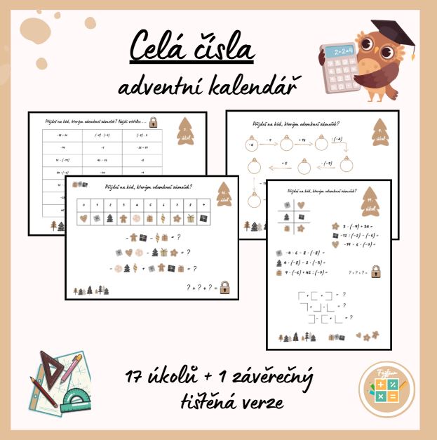 a) denní adventní forma - učitel každý den zveřejní jeden úkol (např. na nástěnce), žáci každý den po vyřešení úkolu získají jedno číslo, které si někam zapisují a nakonec je použijí v závěrečném úkolu č. 18