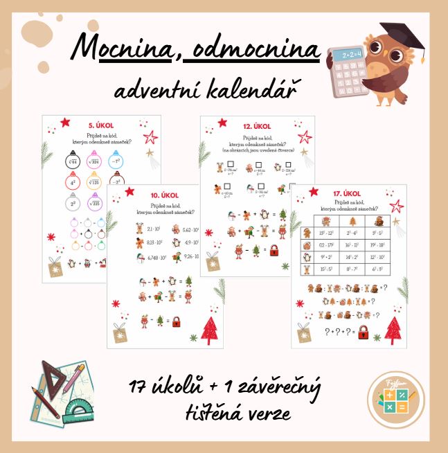- výpočty s druhou mocninou čísel 1 až 20 a opačně druhou odmocninou