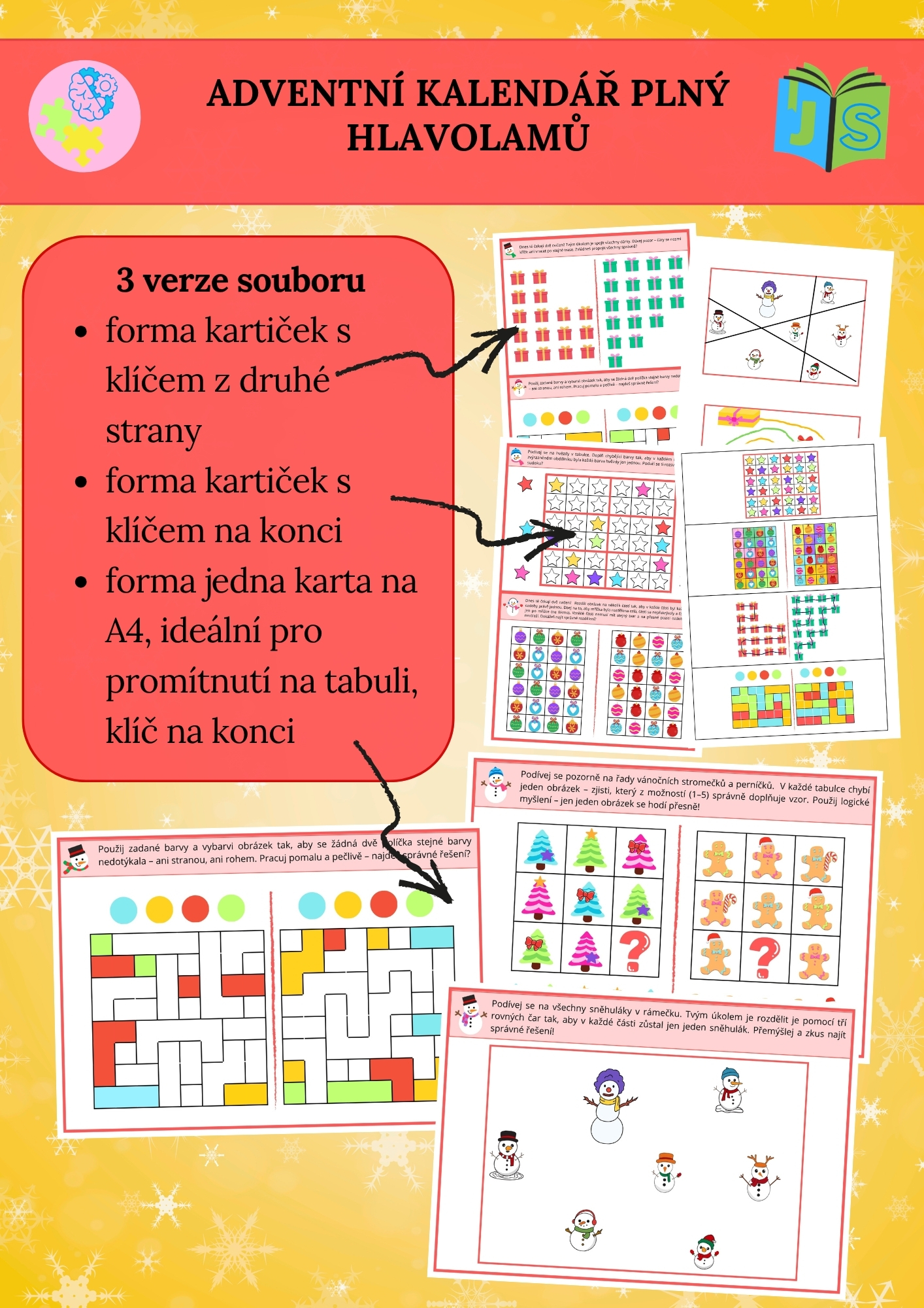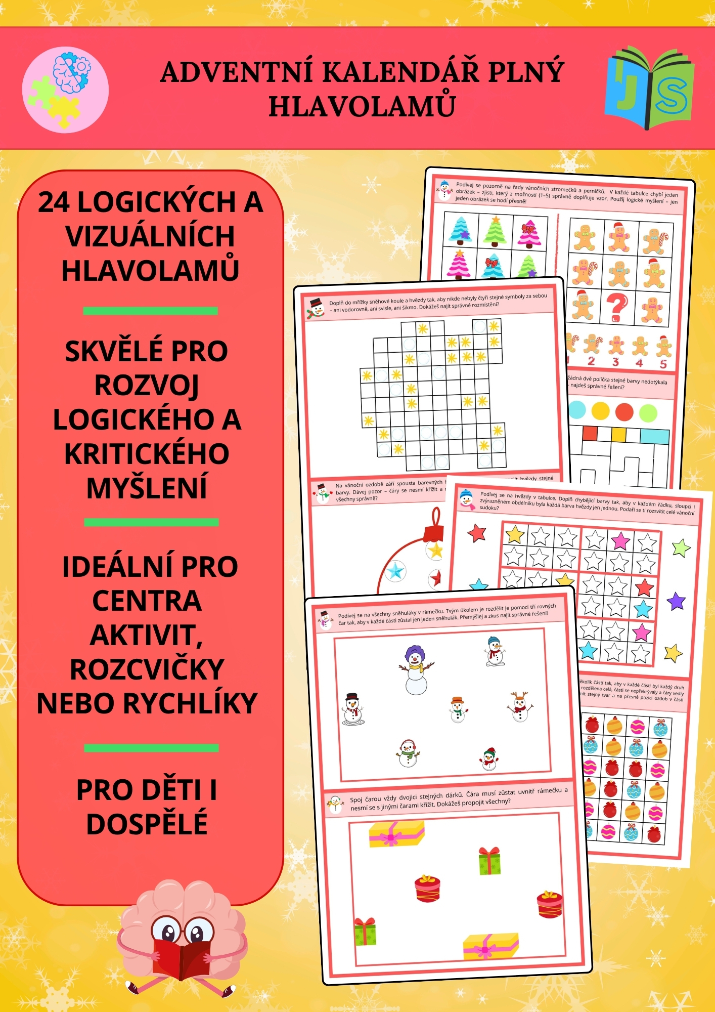 Tento vánoční soubor hlavolamů je skvělým způsobem, jak zpestřit prosincové aktivity, rozvíjet myšlení a zároveň si užít kreativní adventní atmosféru.