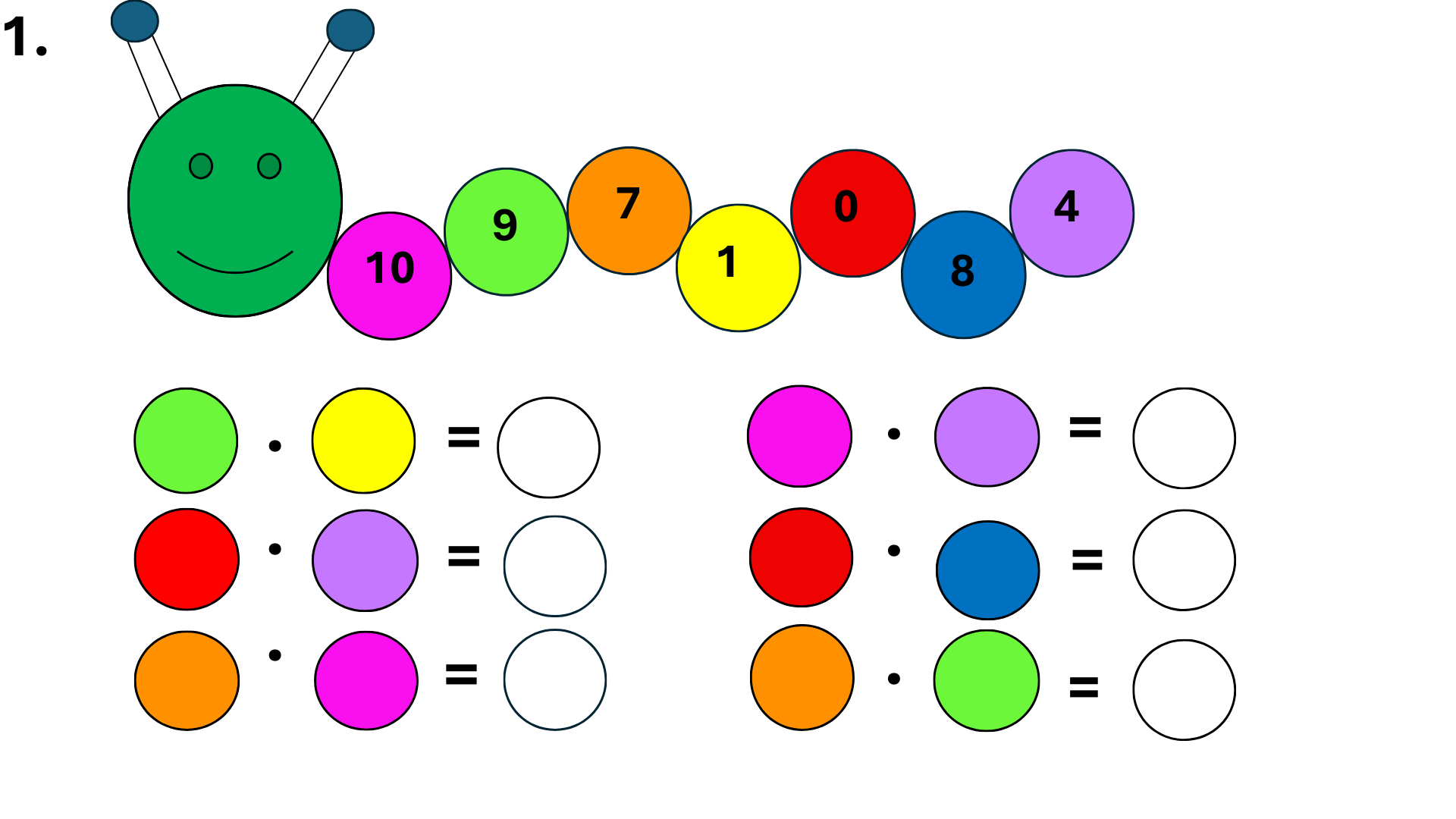 - Úkolem žáků je doplnit čísla do prázdných barevných polí dle barevné stonožky a vypočítat příklad. Následně si mohou správný výsledek zkontrolovat.