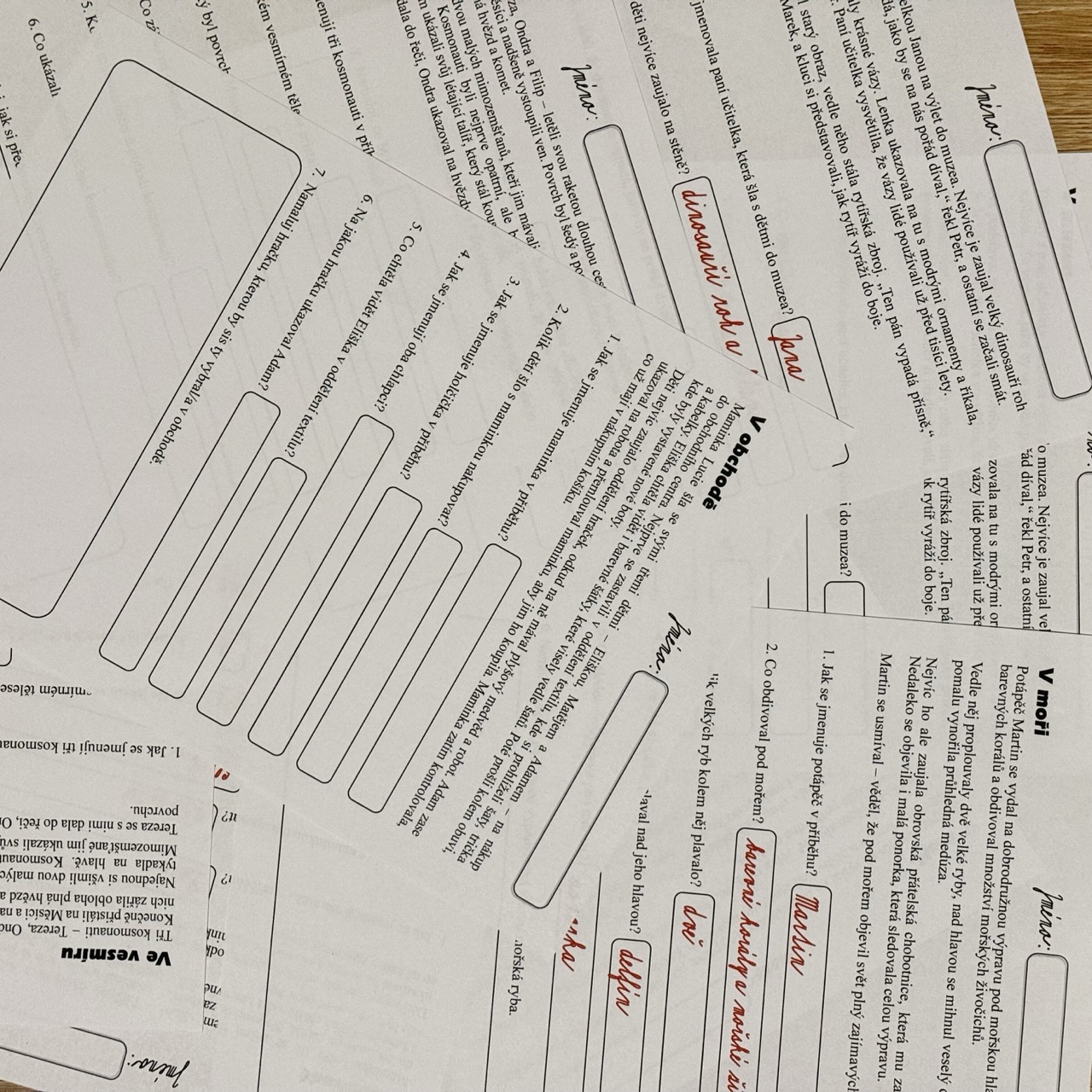 SDÍLENÍ PŘÍBĚHŮ: Děti si mohou navzájem přečíst své příběhy a zkusit odpovědět na otázky spolu – podporujeme tak čtení s porozuměním i vzájemnou spolupráci.