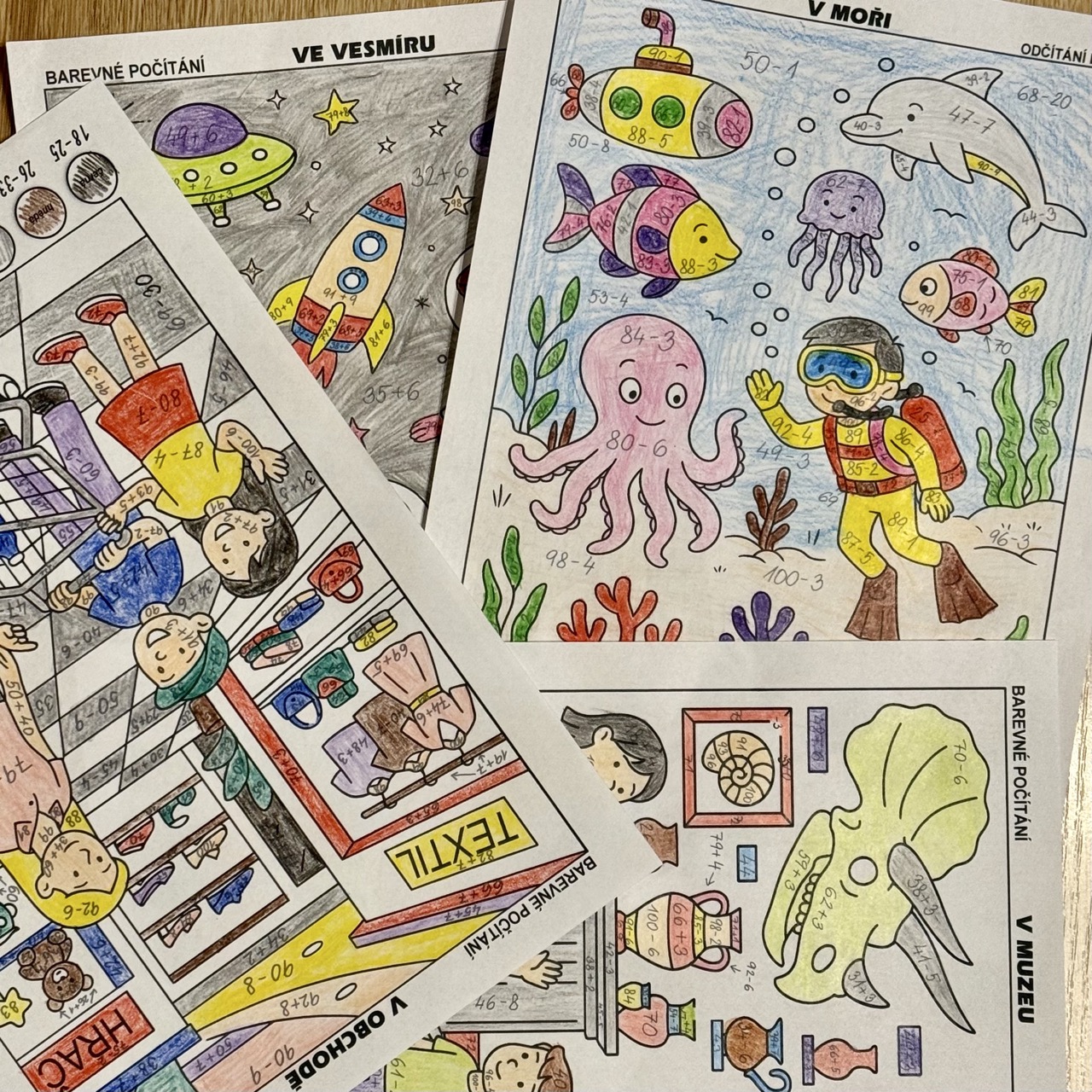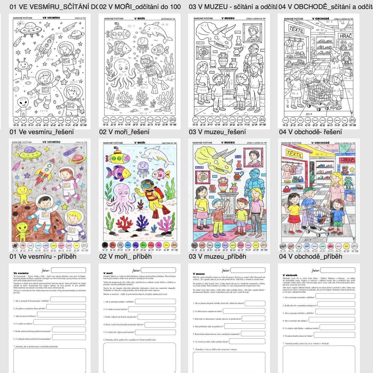 • 4 omalovánky na sčítání a odčítání do 100