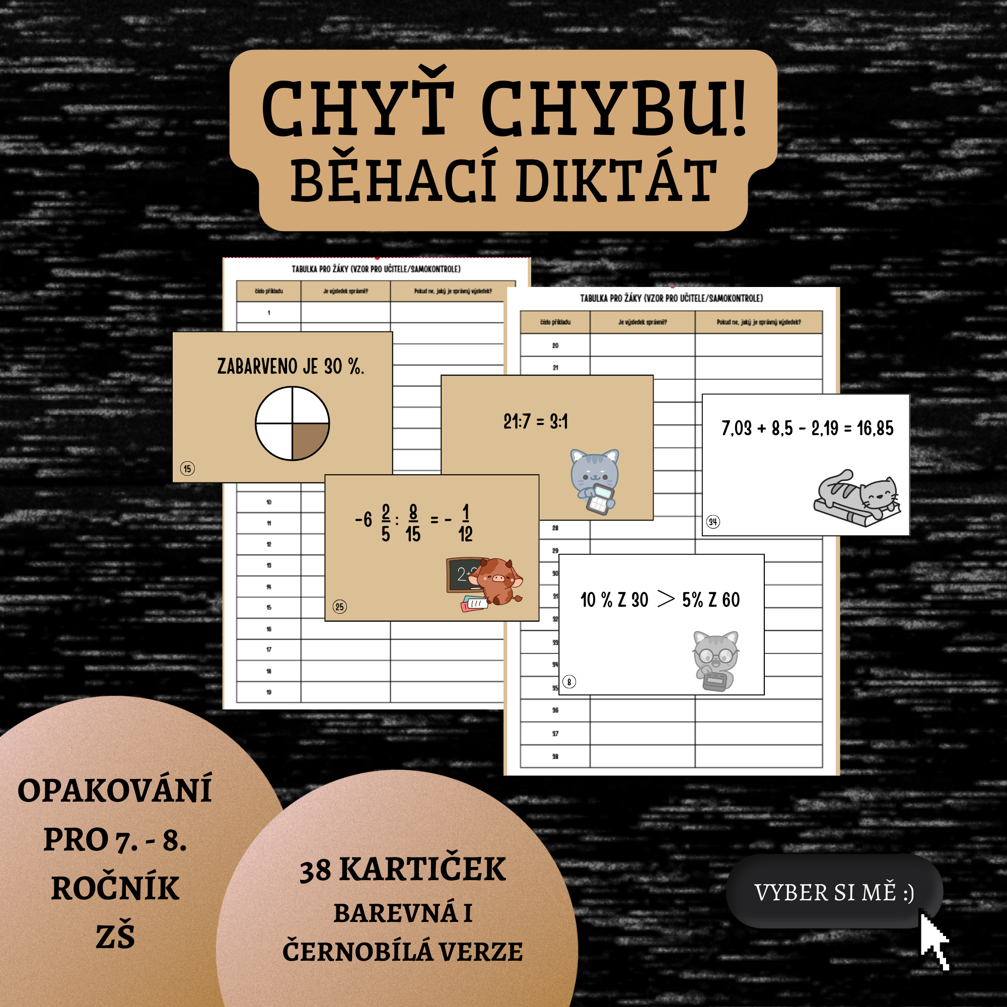 Zábavná a efektivní aktivita pro žáky 7. - 8. ročníku, ideální k opakování učiva na konci školního roku nebo na začátku následujícího školního roku! Materiál obsahuje 38 příkladů, z nichž 20 je správně a 18 obsahuje chybu.