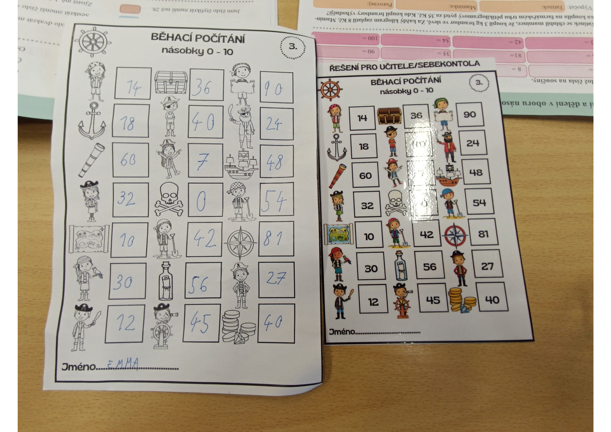 Jakmile mají hotovo, můžou si zkontrolovat pomocí připravených sebekontrol. U nás vždy postupně vznikají i již hotoví kontroloři, kteří si nejprve sami zkontrolují a následně pomáhají ostatním. Rychlíci jsou tím pádem zabavení.