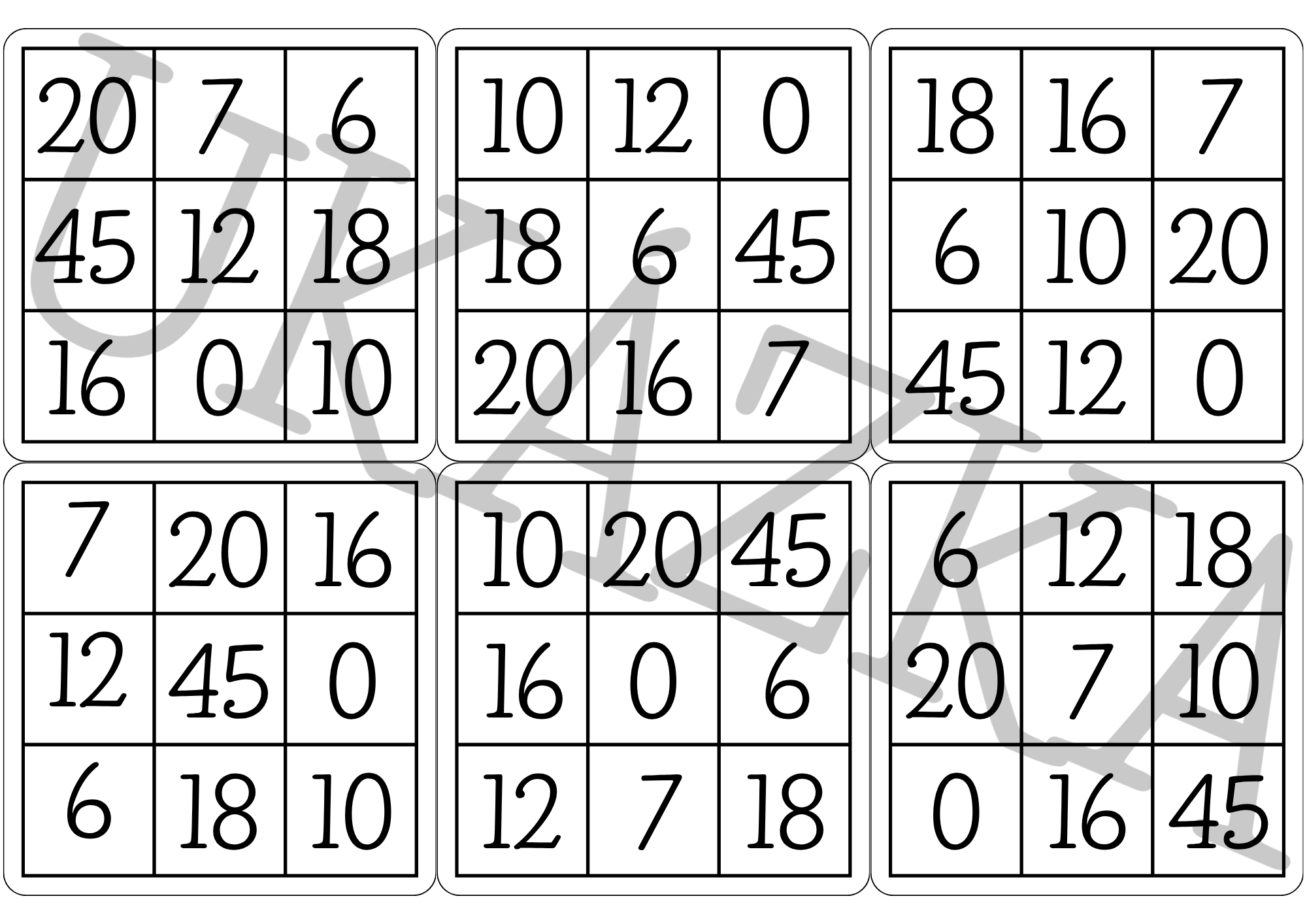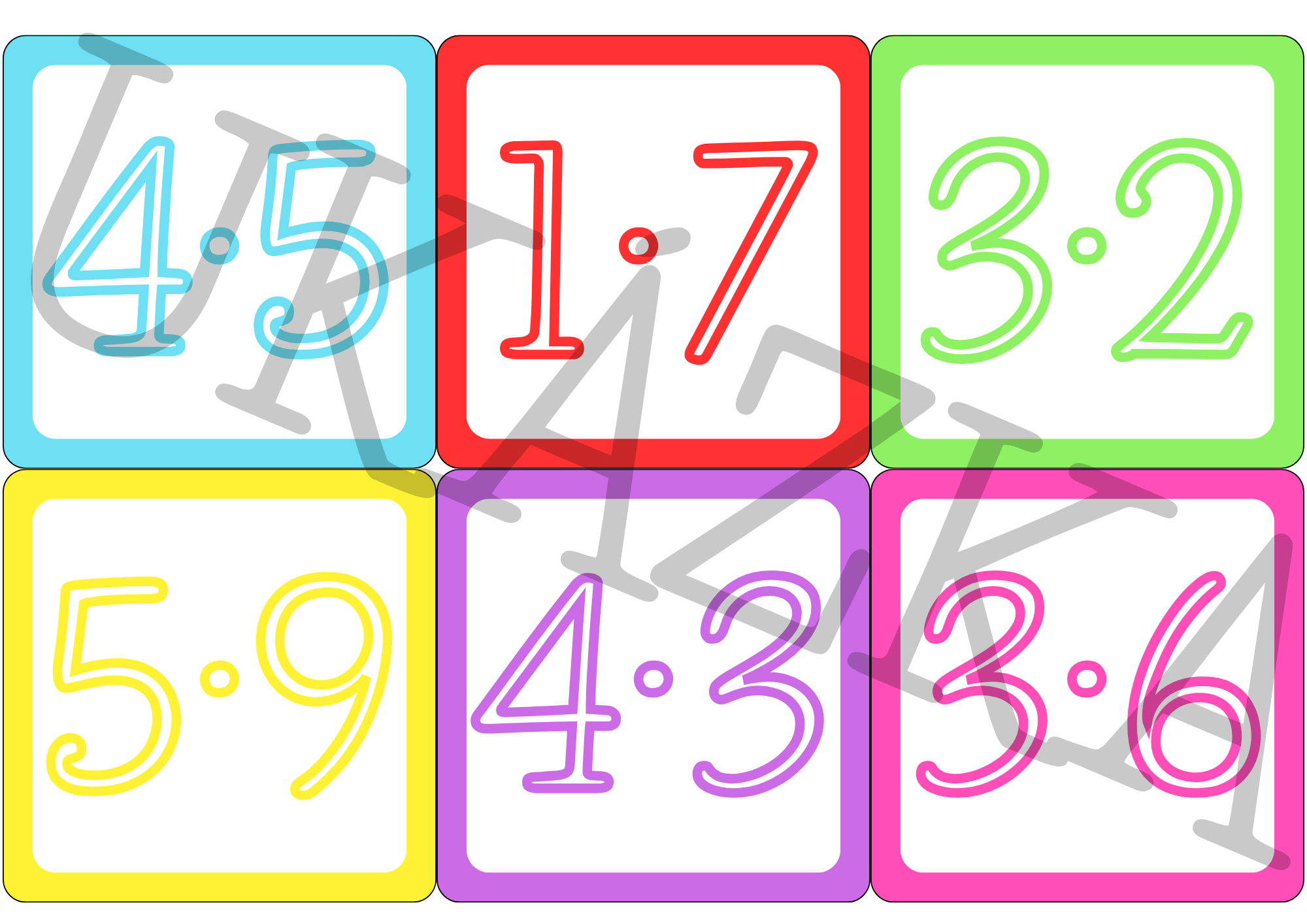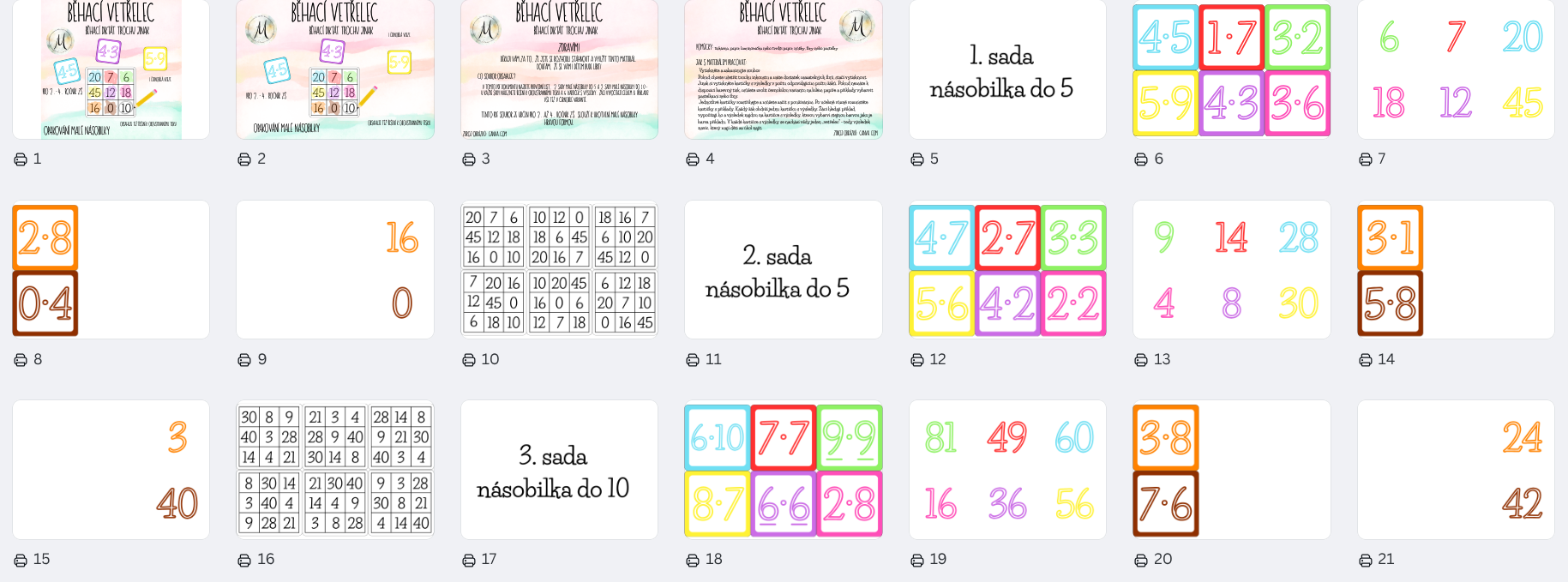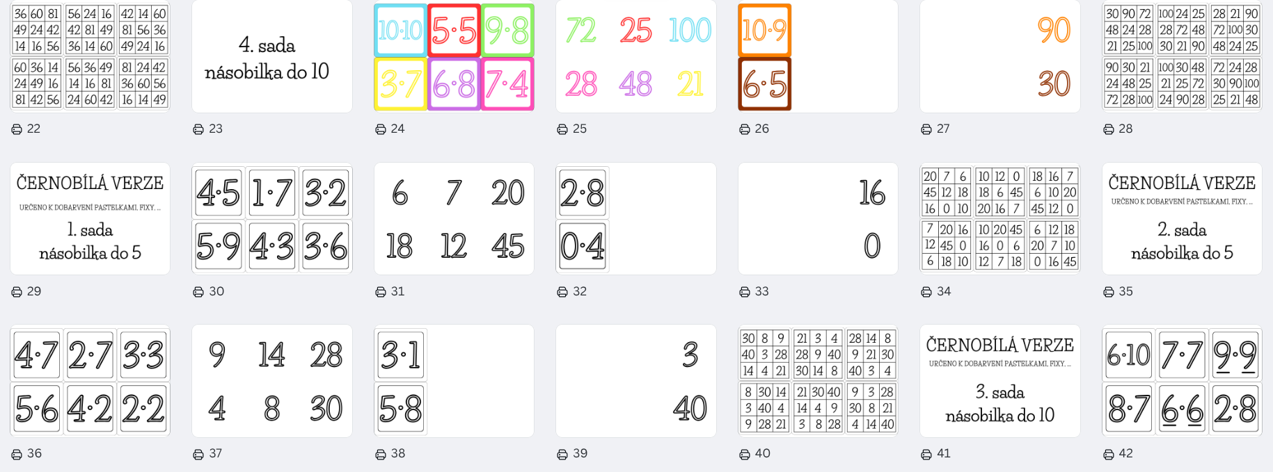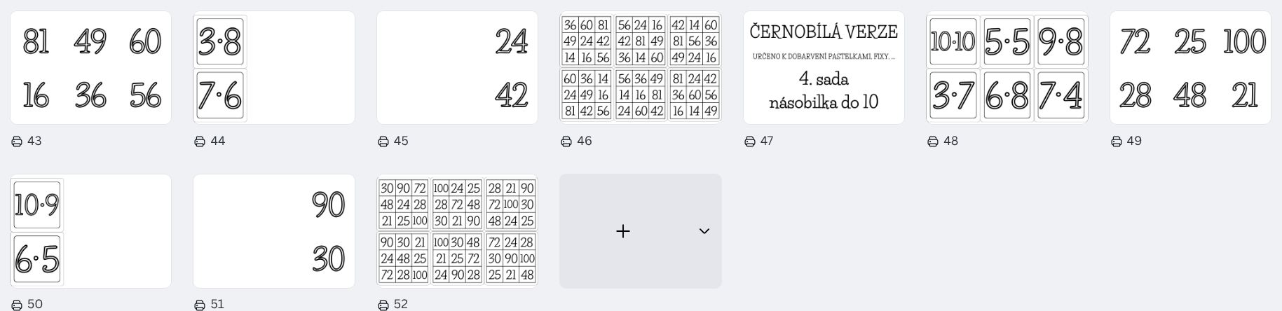 U každé sady naleznete řešení k oboustrannému tisku a 6 kartiček s výsledky. Žáci vypočítají celkem 8 příkladů.