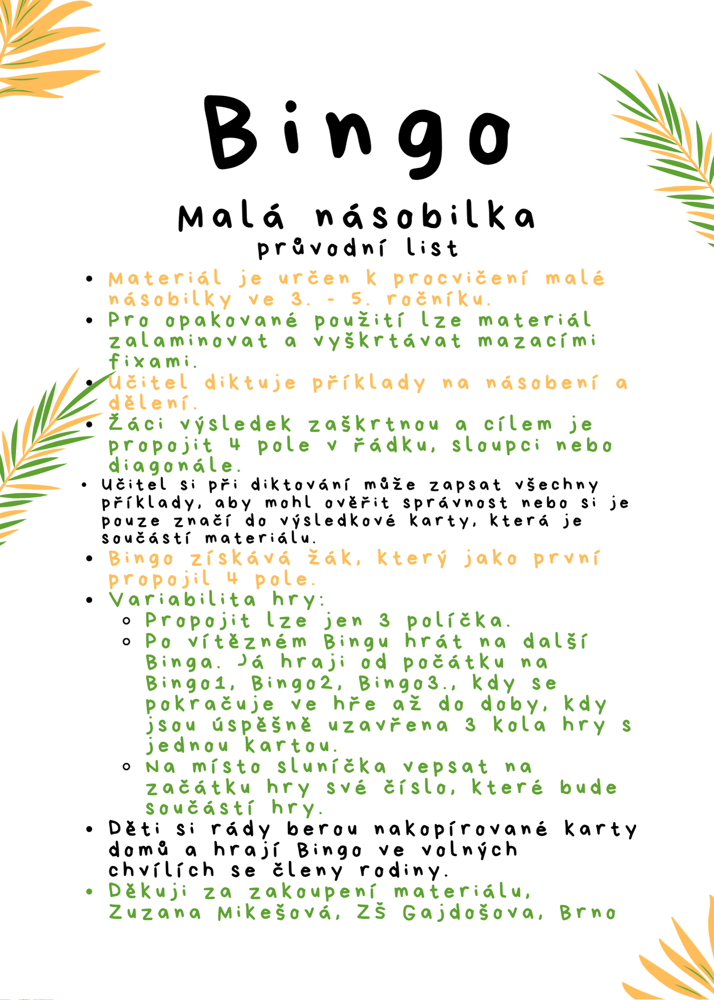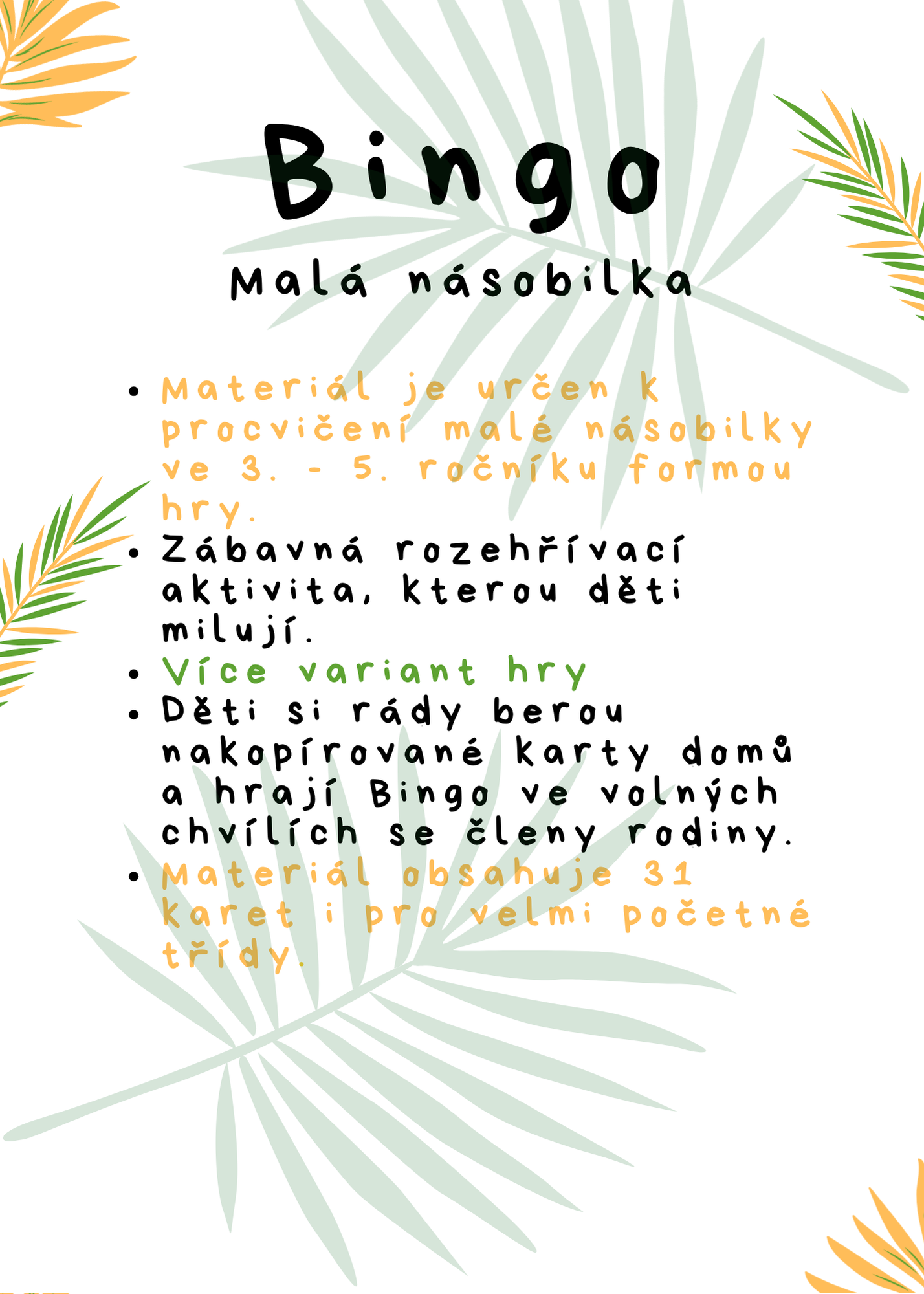 - Materiál je určen k procvičení malé násobilky ve 3. - 5. ročníku.