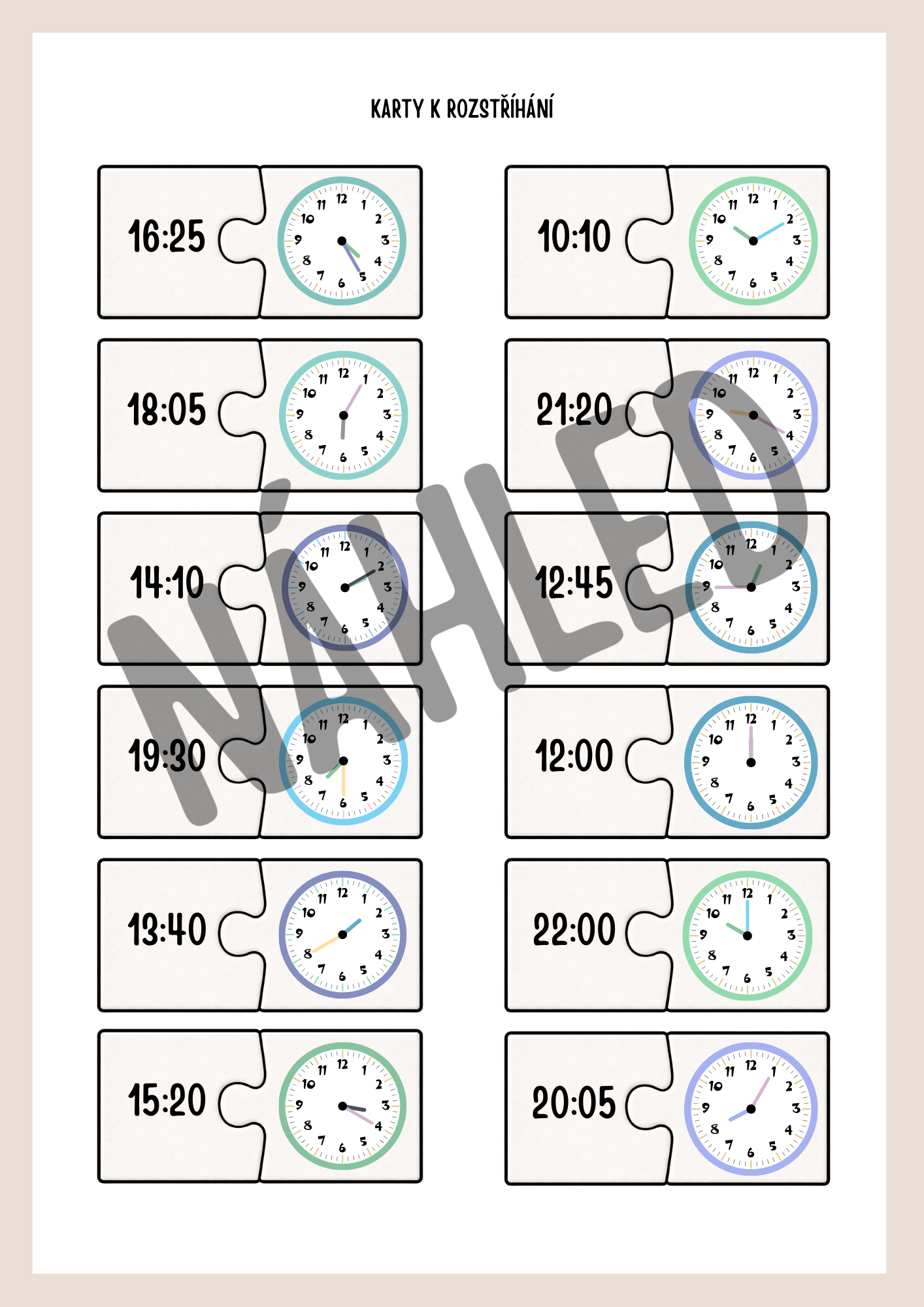 Soubor obsahuje pestrou škálu aktivit – časové puzzle, zábavné „časové nesmysly“, hledání ukazatelů času v obrázku, úlohy z každodenních situací i cvičení na převody času. Díky různým typům úkolů se rozvíjí nejen matematické dovednosti, ale i logické myšlení a schopnost přemýšlet o čase v reálném kontextu.