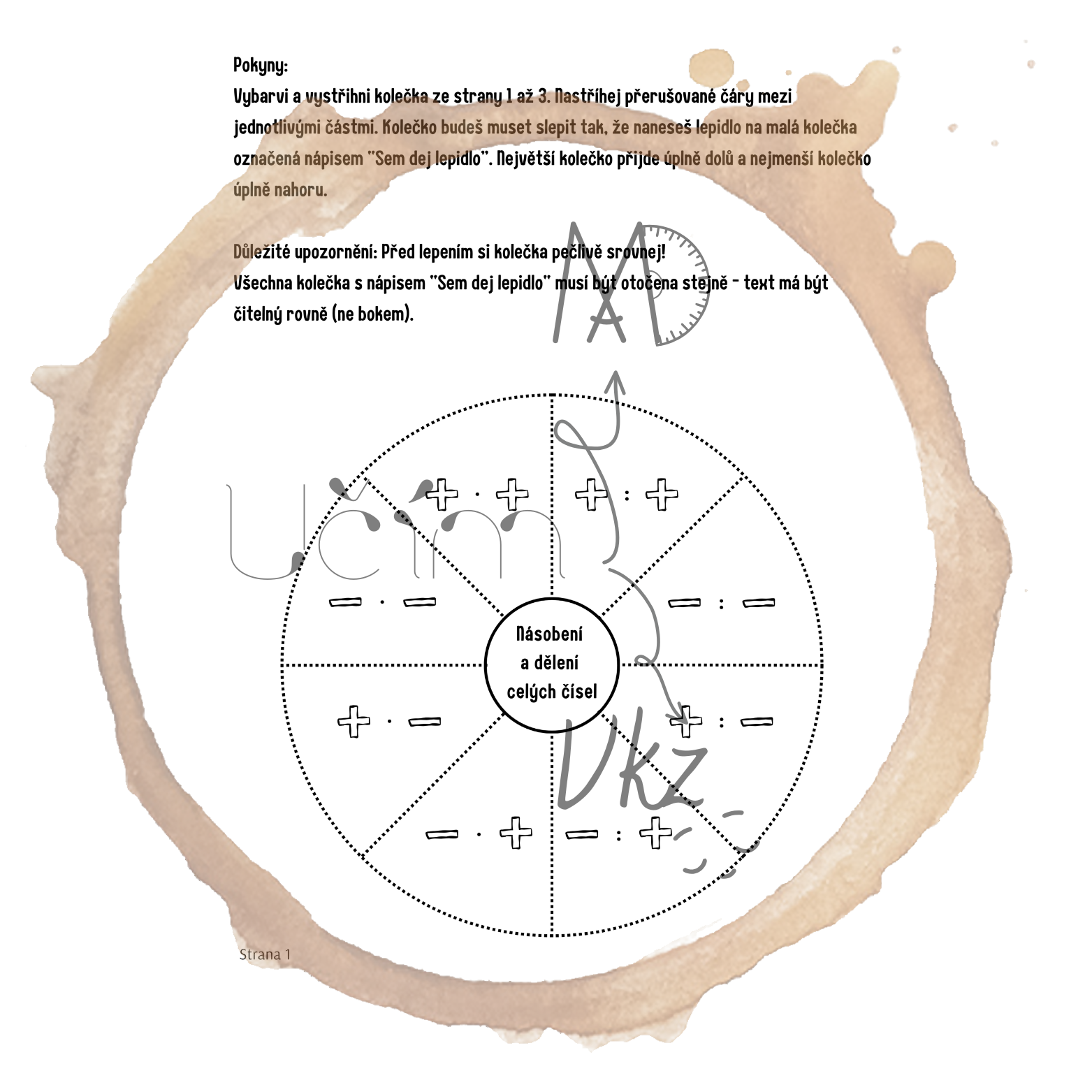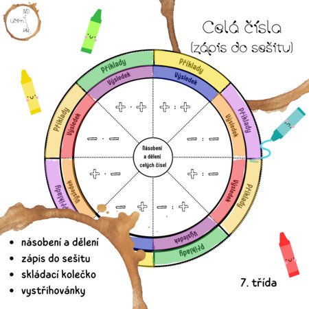 Materiál je určen primárně pro žáky 7. třídy ZŠ a je vhodný jako zápis do sešitu k úvodu do násobení a dělení celých čísel. Obsahuje tři na sebe navazující kolečka: