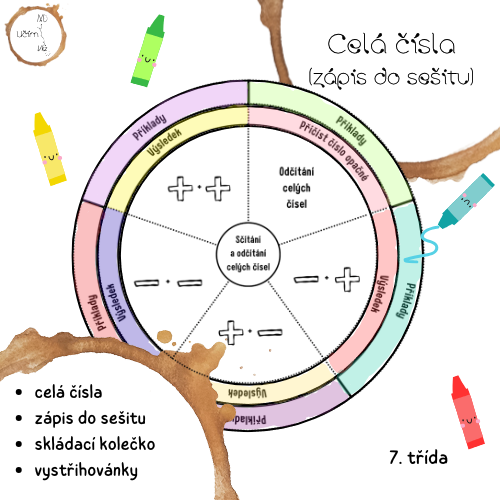 Materiál je určen primárně pro žáky 7. třídy ZŠ a je vhodný jako zápis k úvodu do sčítání a odčítání celých čísel. Obsahuje tři na sebe navazující kolečka: