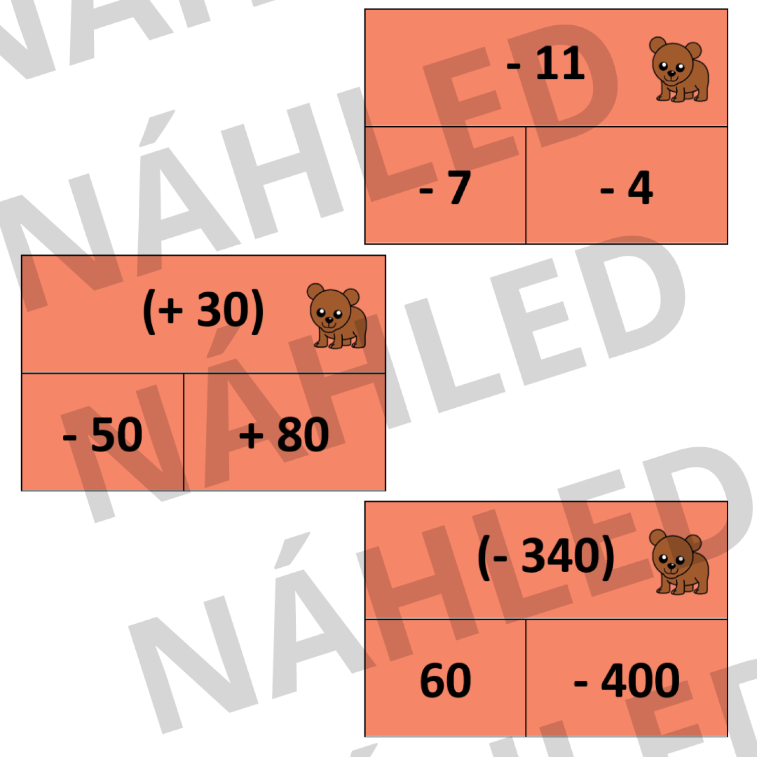 Můžeme dětem rozdat jen menšence a menšitele a nechat je tvořit vlastní příklady (výsledky si říkají zpaměti nebo je píšou do sešitu).