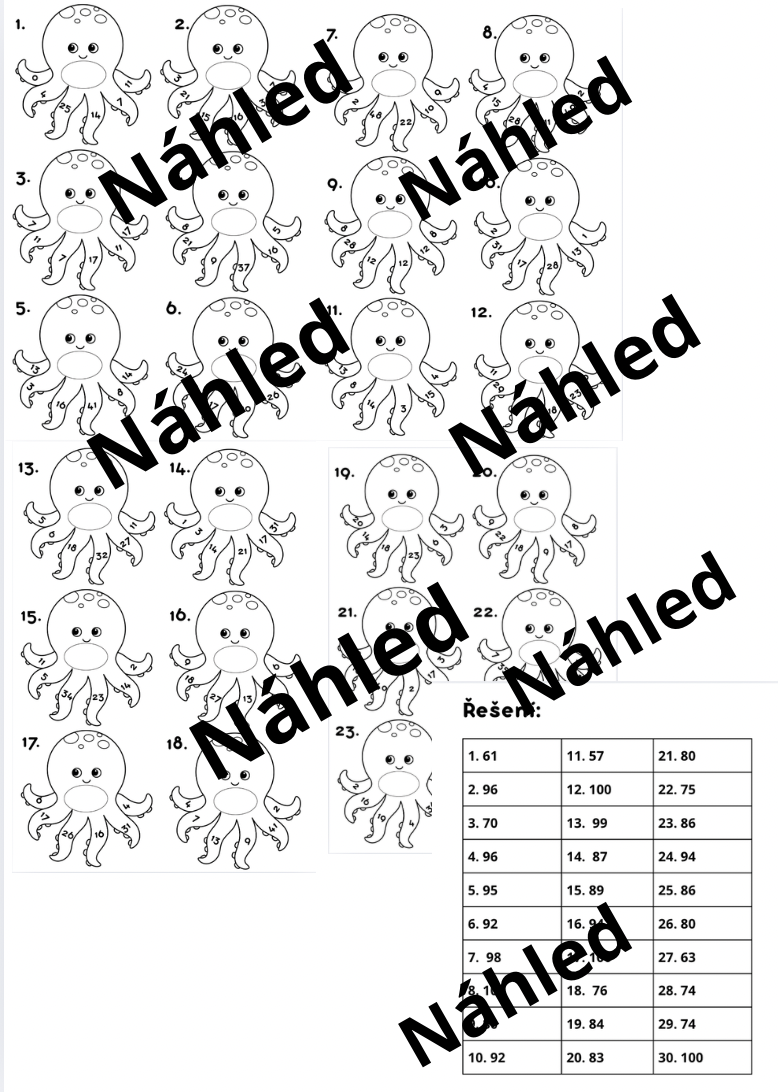 Materiál obsahuje 30 chobotniček s čísly a jejich řešení.