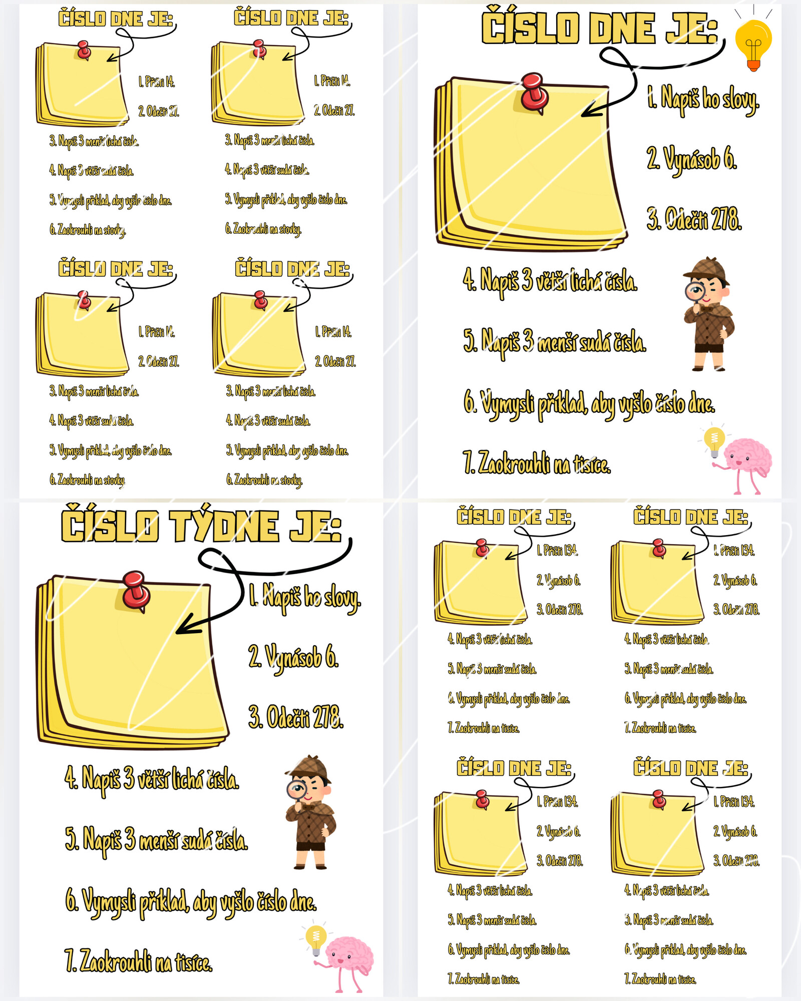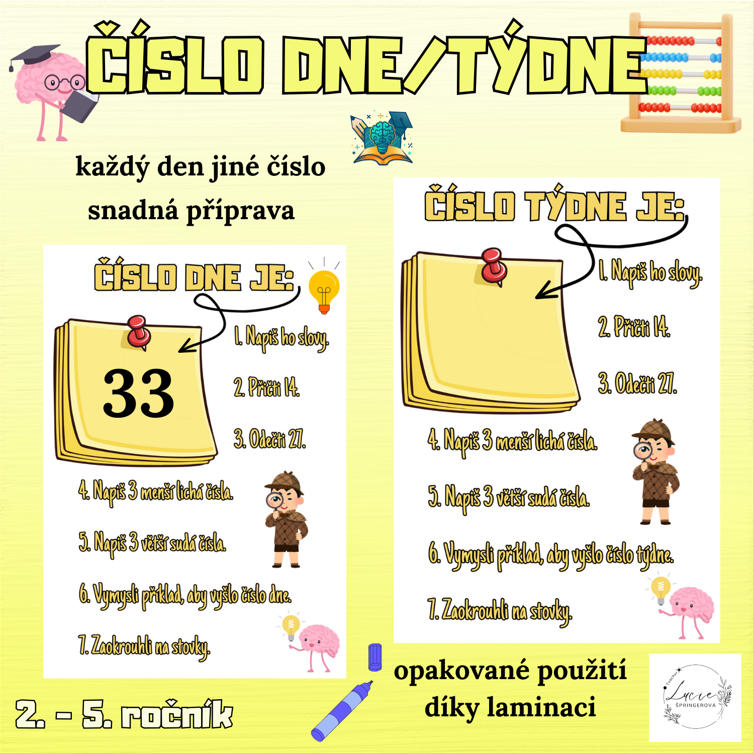 Číslo týdne lze vytisknout, zalaminovat a každý týden pouze přepisovat nové číslo (např. jako rozcvičku, skupinovou práci...).