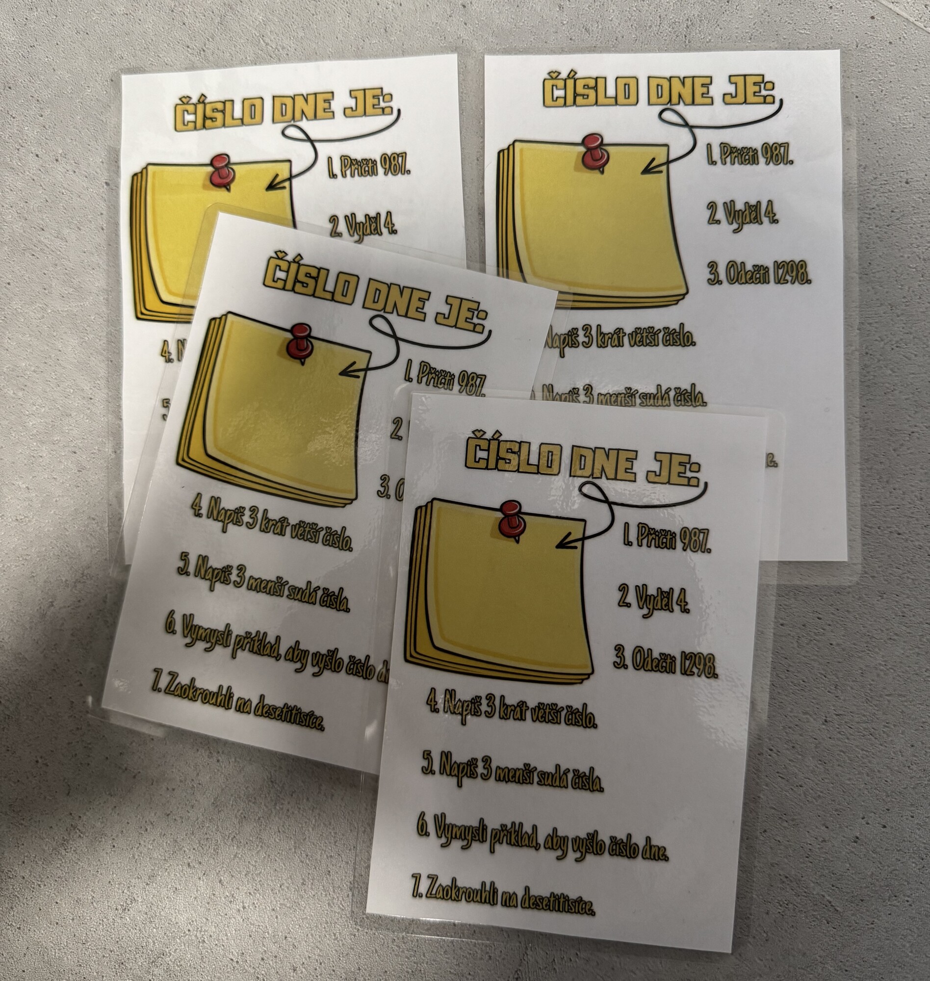 Lze vytisknout i ve zmenšené podobě – každý žák má vlastní kartičku, na kterou píše fixem, a po použití se jednoduše smaže.