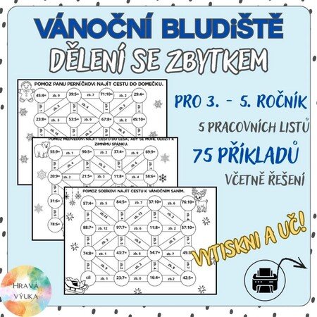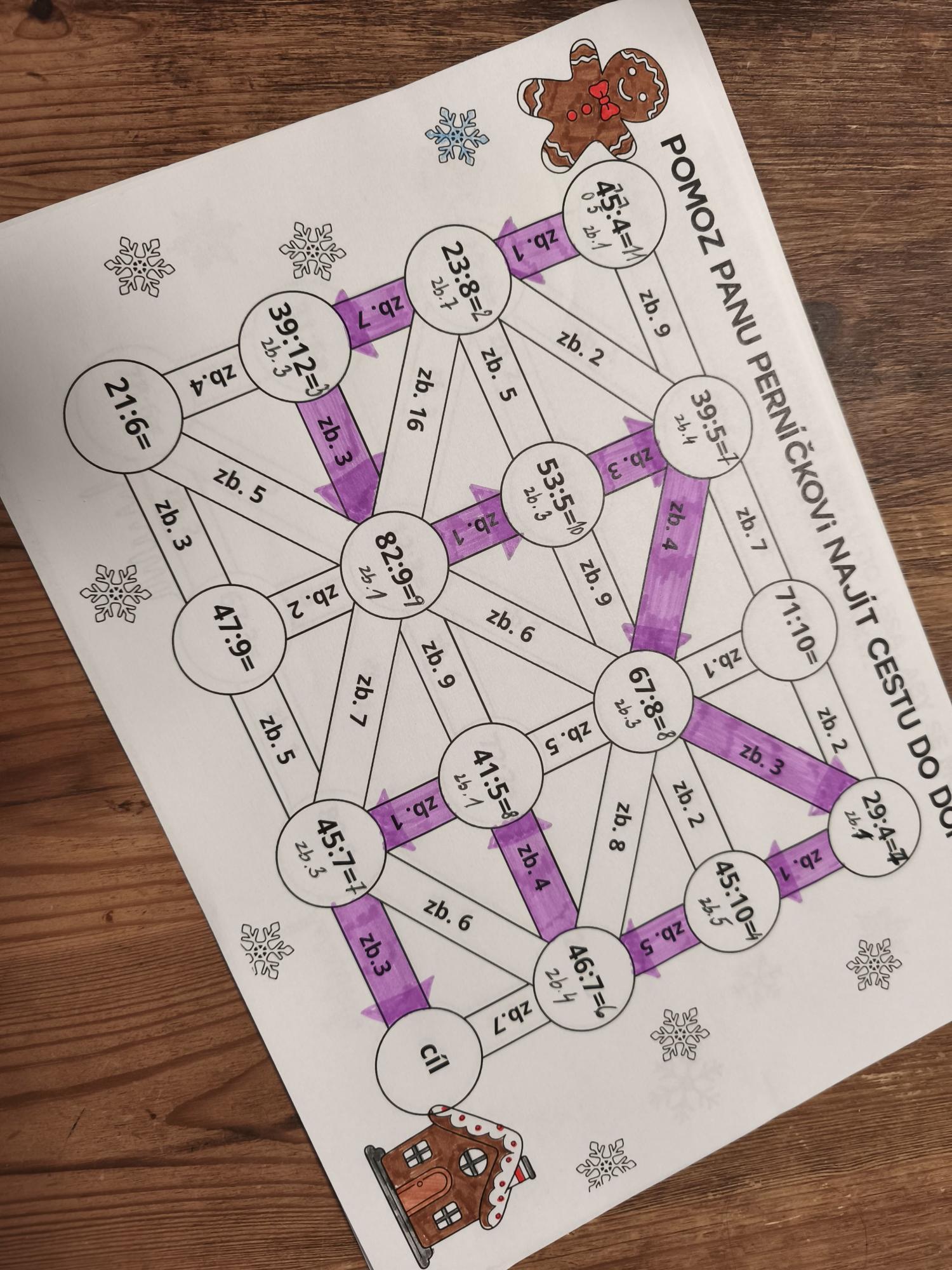 Žáci řeší příklady na dělení se zbytkem, které je postupně navedou k cíli v bludišti.