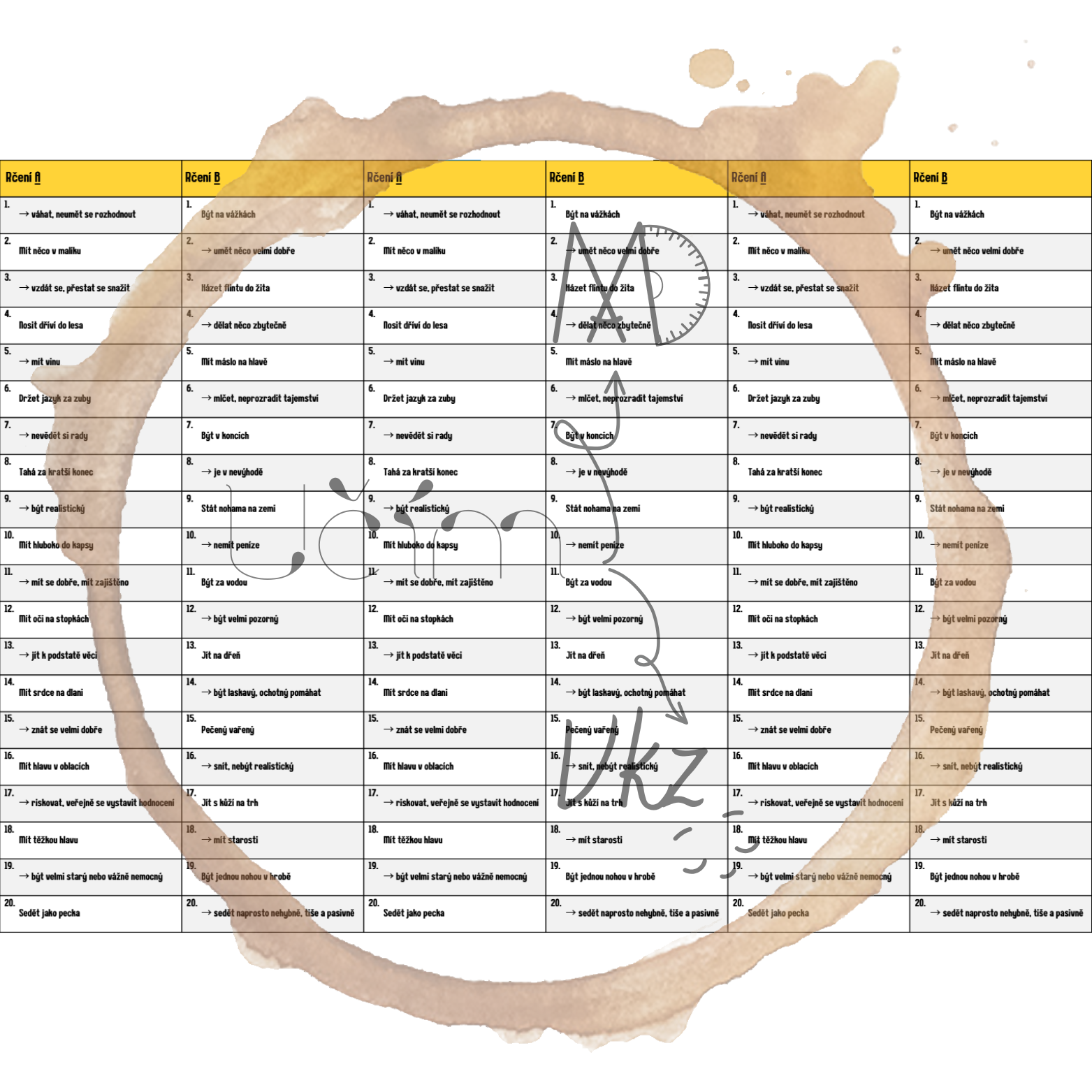 - na zadní straně pro rychlíky opakování rčení a jejich význam