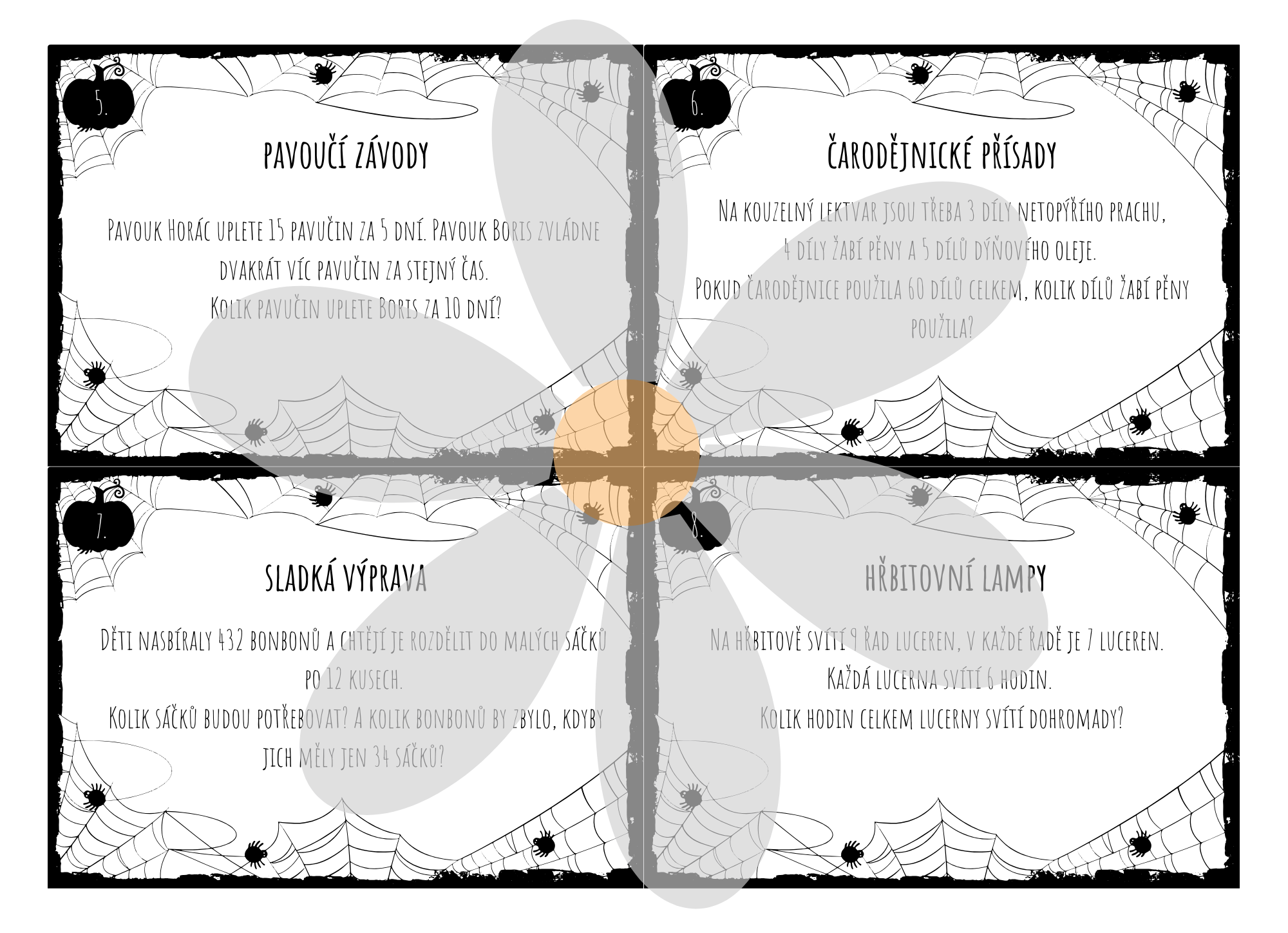 Tento materiál je určen pro žáky 4. a 5. ročníku základní školy a slouží k procvičování matematických dovedností a logického myšlení hravou a tematickou formou. Obsahuje slovní úlohy s halloweenskou a strašidelnou tematikou, které děti motivují k řešení a propojují výuku matematiky.