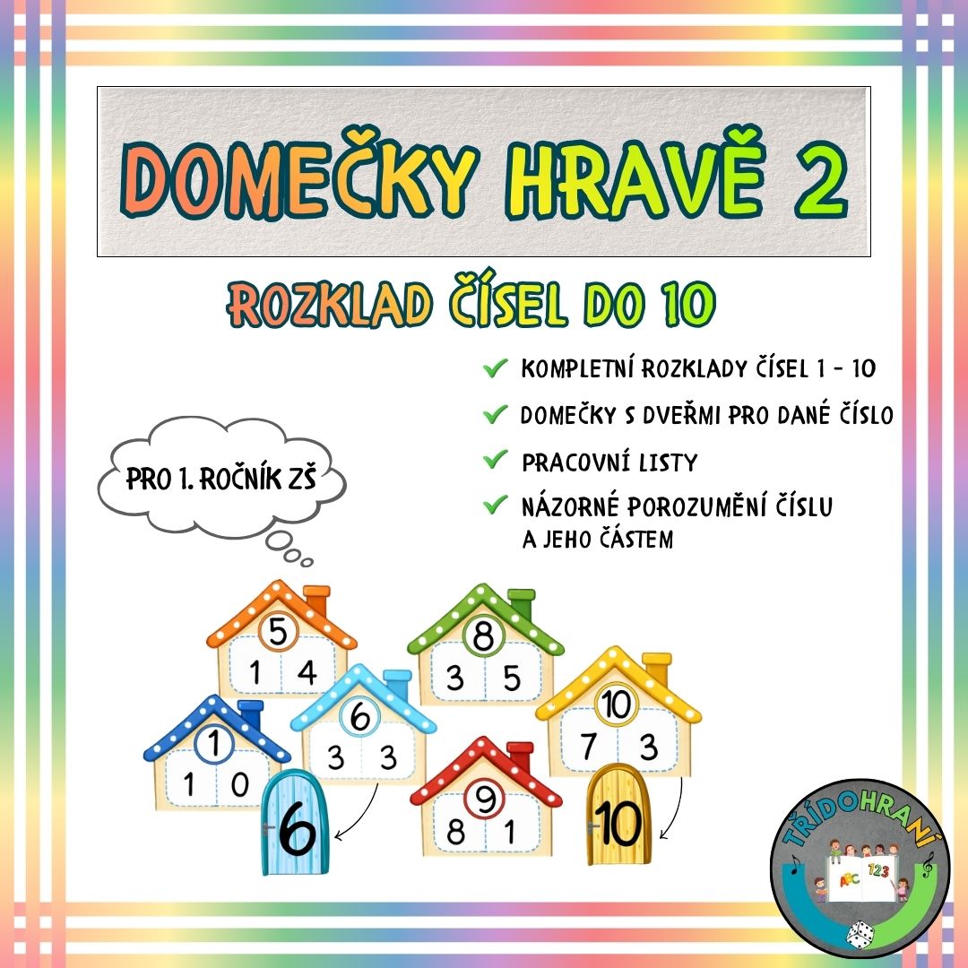💡 Tento materiál je ideální pro děti, které se učí nejlépe názorně - domečky jim pomohou rozklad čísel skutečně pochopit a získat jistotu v počítání.