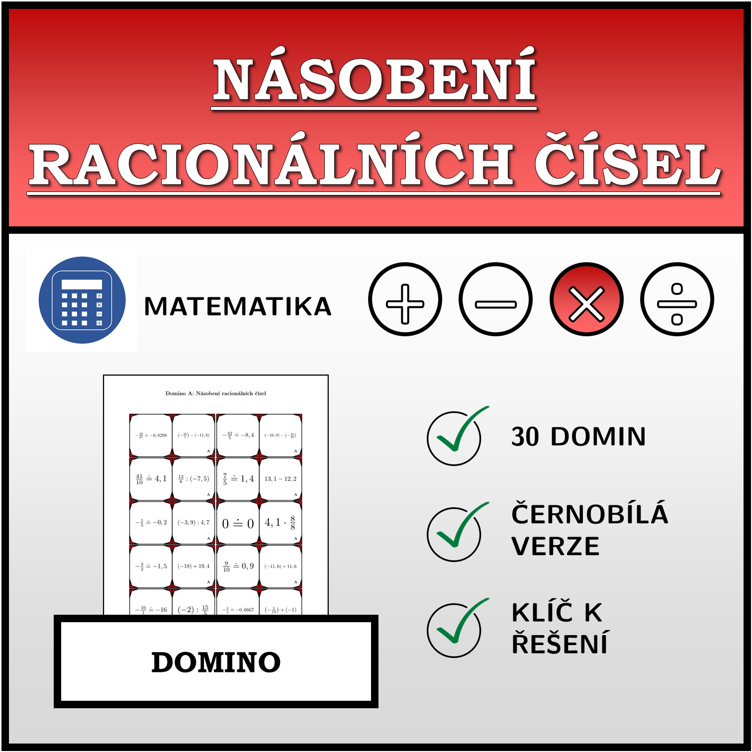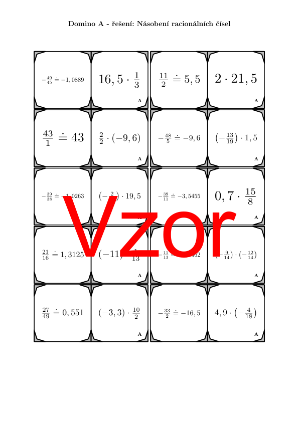 V materiálu se nachází celkem 30 různých sad domin na téma násobení racionálních čísel v následujícím uspořádání: