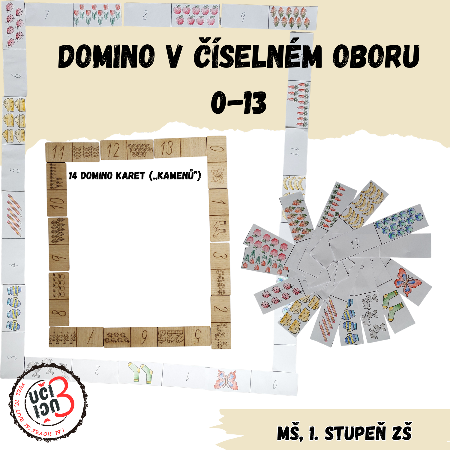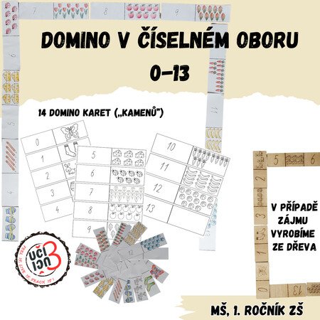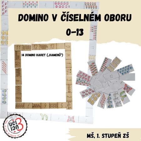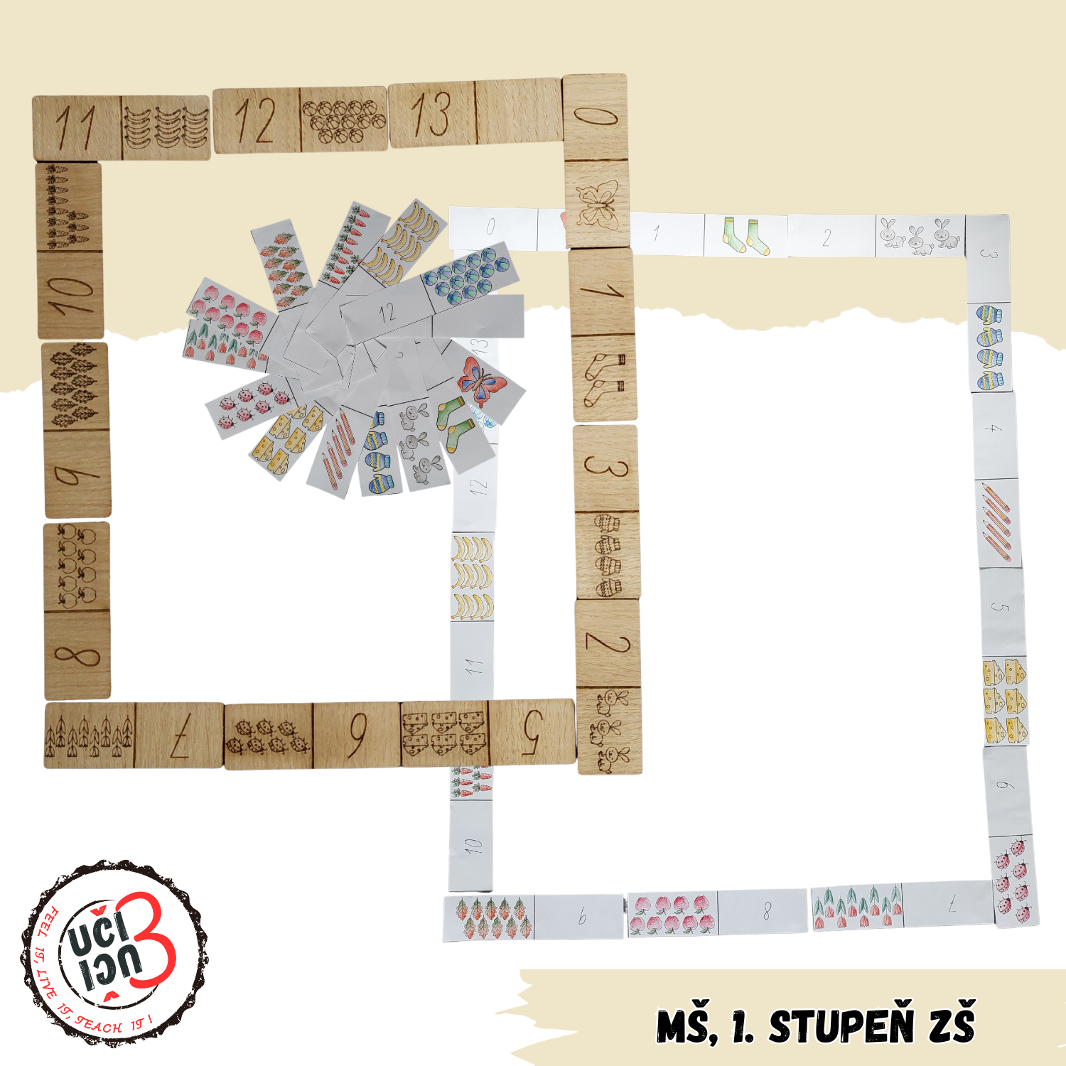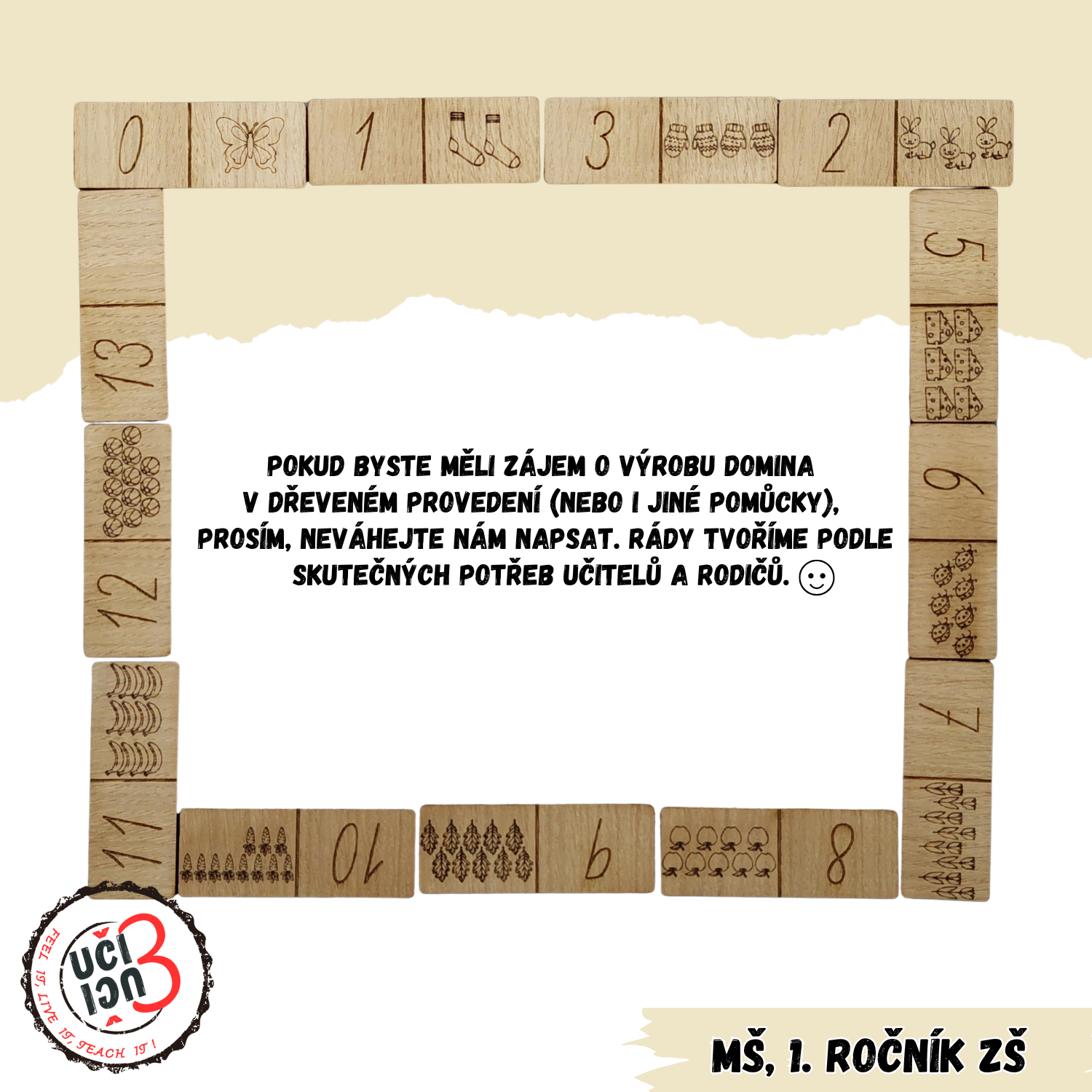 Cílem domina 0 - 13 je spojit počet prvků s příslušnou číslicí a naopak. Získat základní představu o číslech v oboru 0-13 přirozeně, skrze smysly.