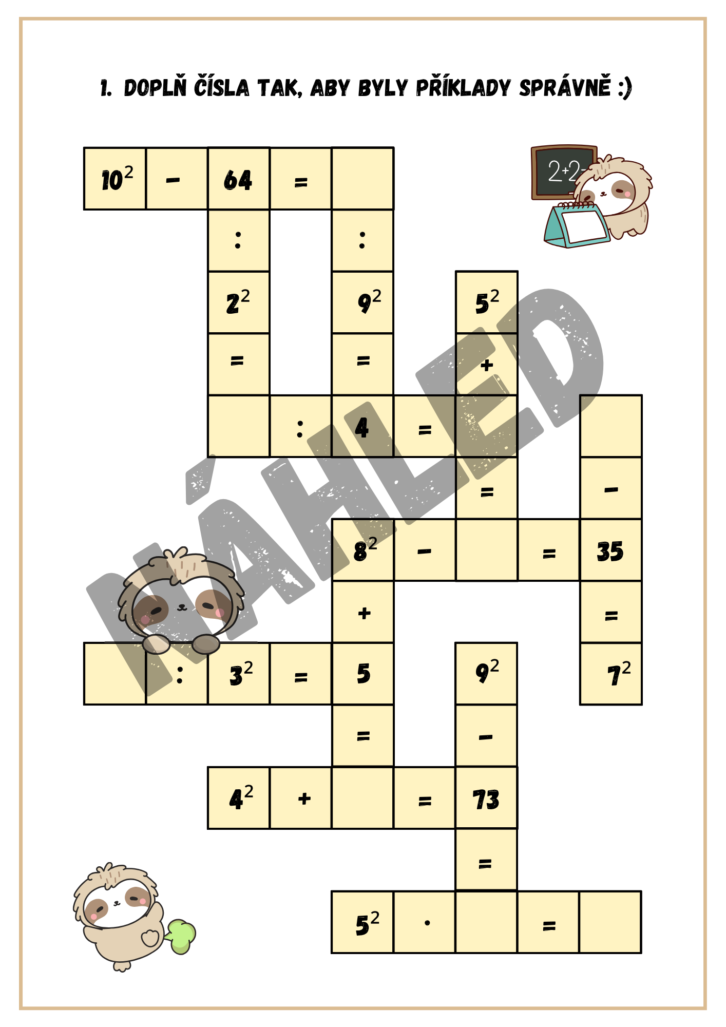 - zajímavé pracovní listy s příklady, tajenkou a křížovkou