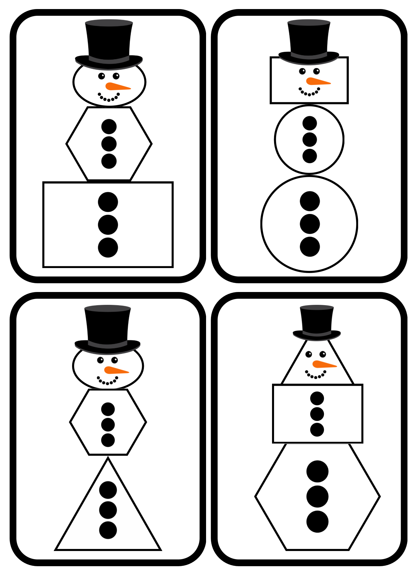 Děti skládají sněhuláka z různých geometrických tvarů.