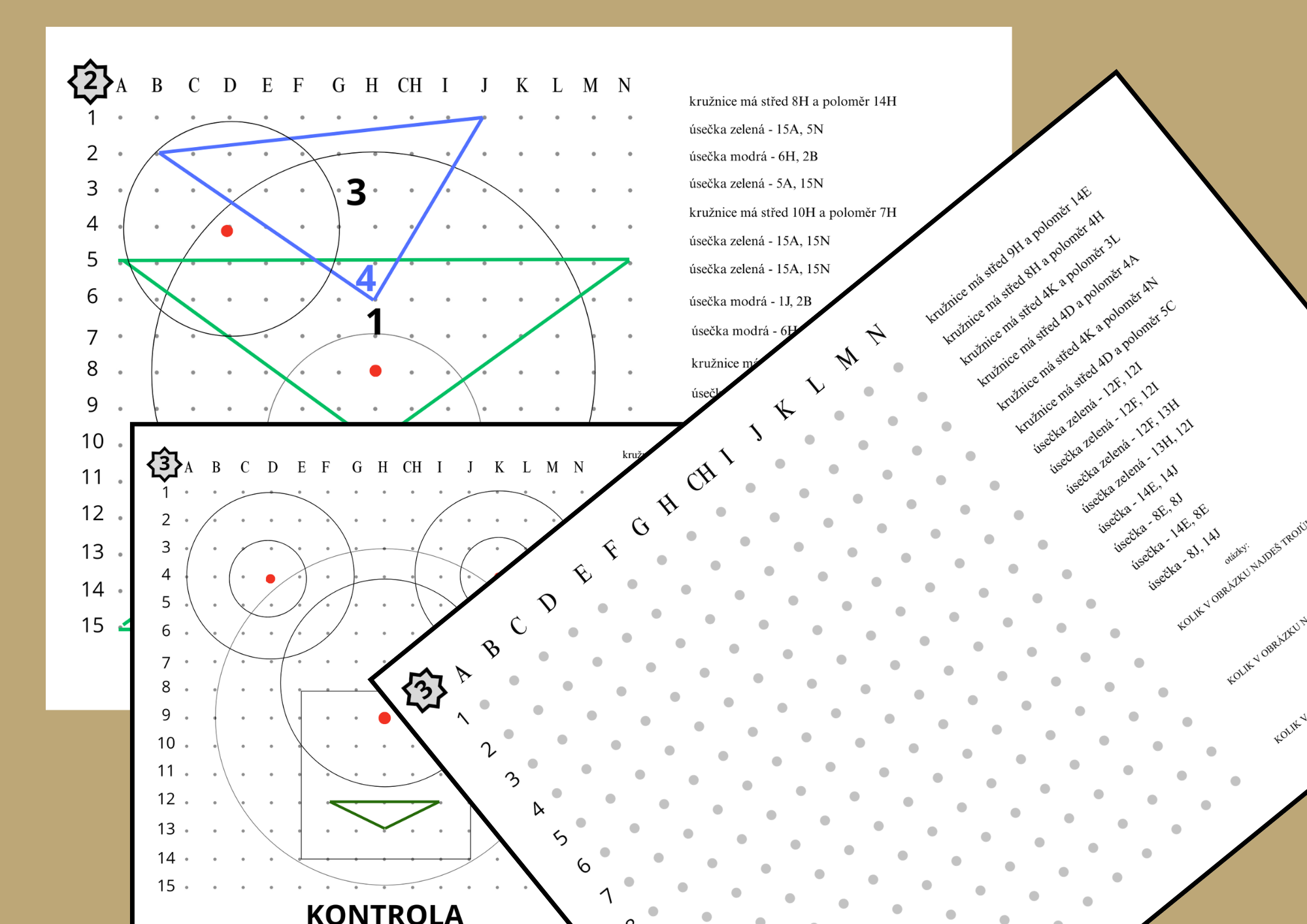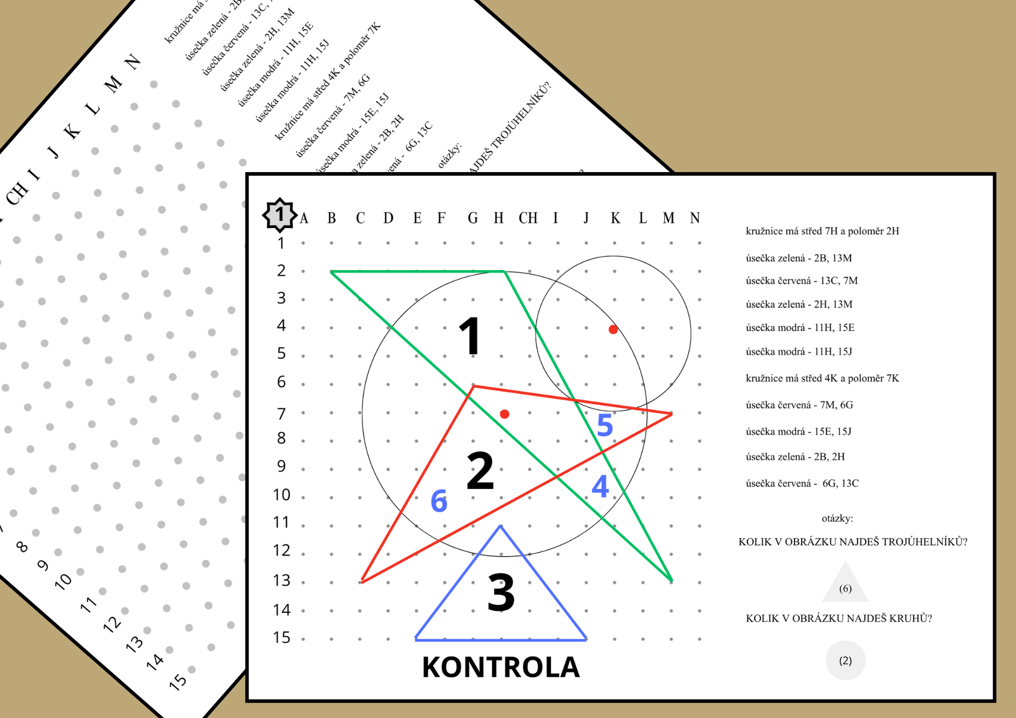 Materiál jsem se snažila připravit tak, aby děti bavilo hledání a objevování. Rýsují podle přesných pokynů, ale zároveň jsou vedeny k pozornému pozorování a samostatné kontrole. Připravila jsem i kontrolní listy s hotovým obrázkem, díky kterým si mohou ověřit svou práci. Díky tomu je sada vhodná i pro samostatnou práci, skupinovou výuku nebo projektové dny.