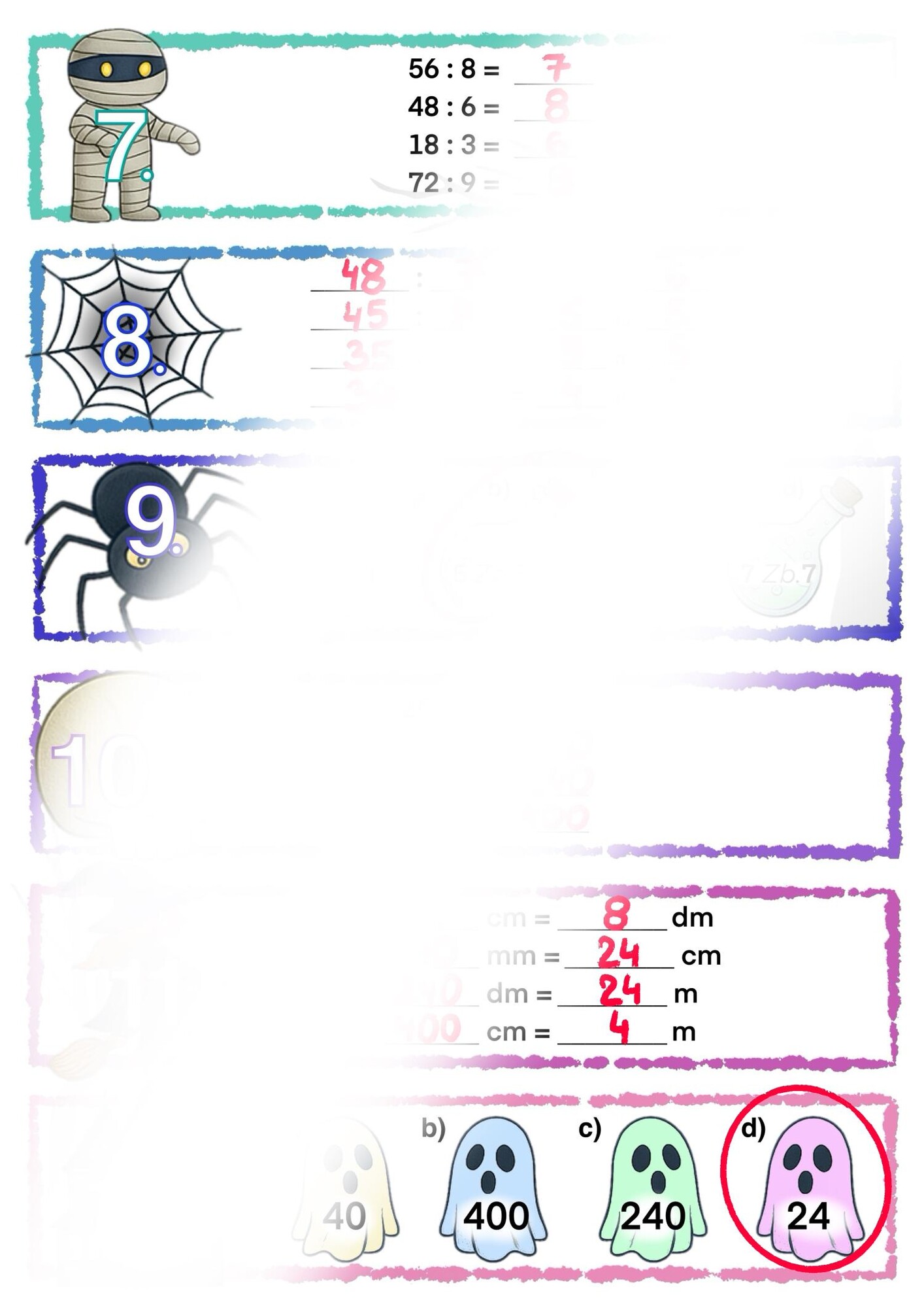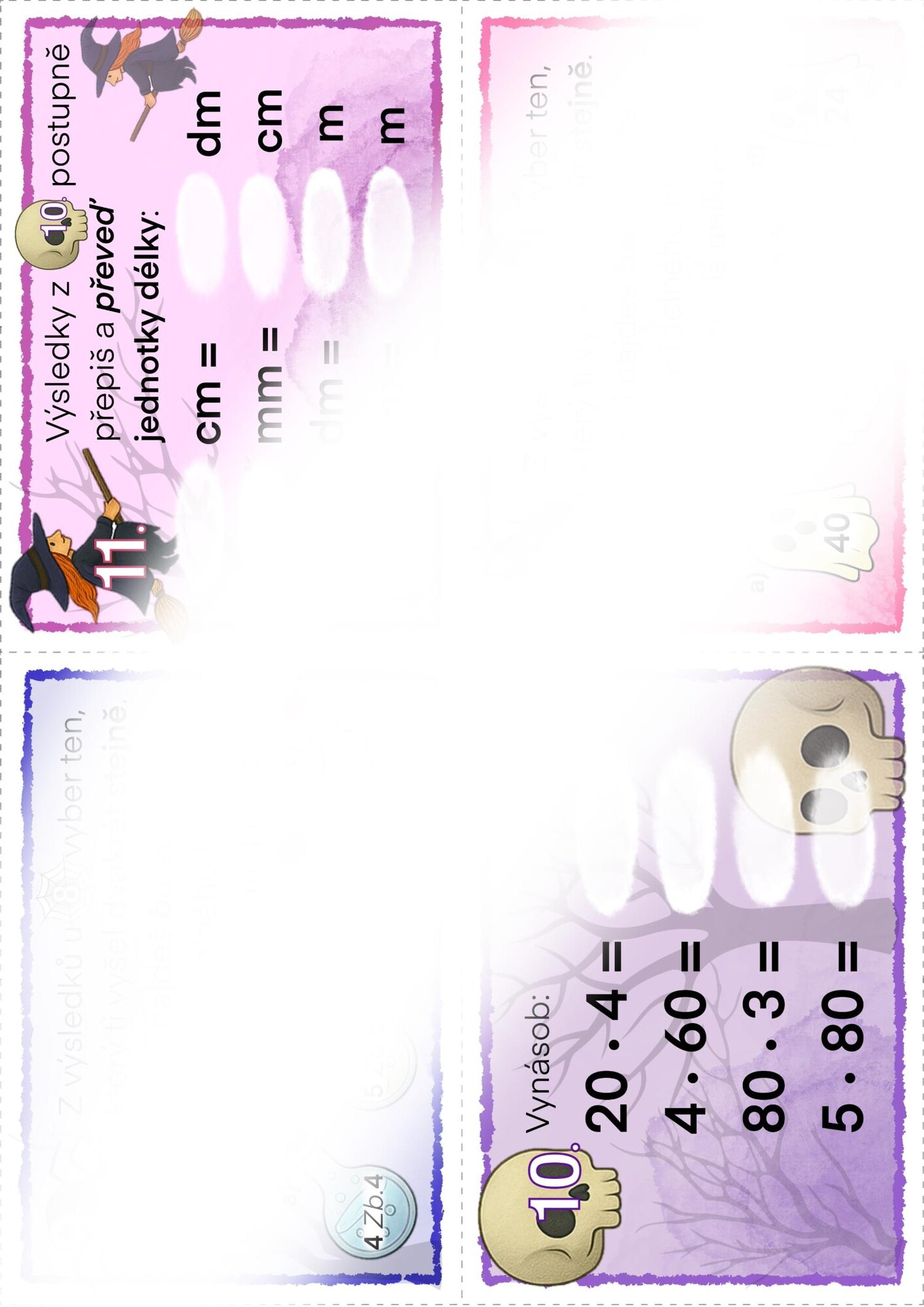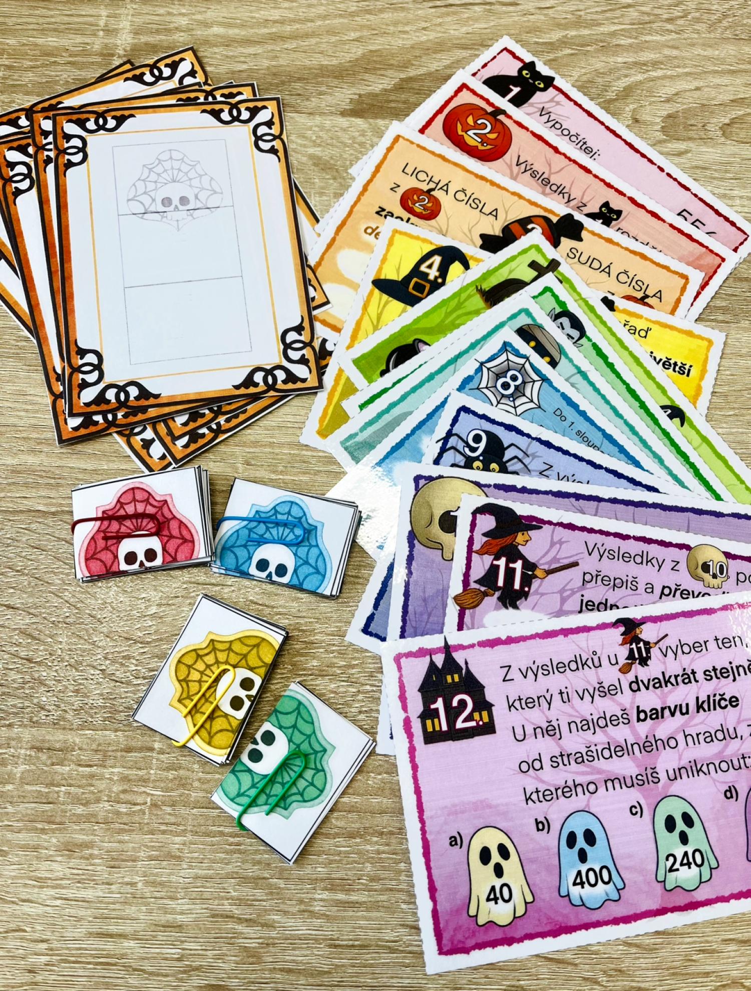 Stačí připravit kartičky s úkoly, zalaminovat je a rozmístit po třídě, doplnit atmosféru temnou hudbou a dekoracemi, které vytvoří opravdové kouzlo Halloweenu.