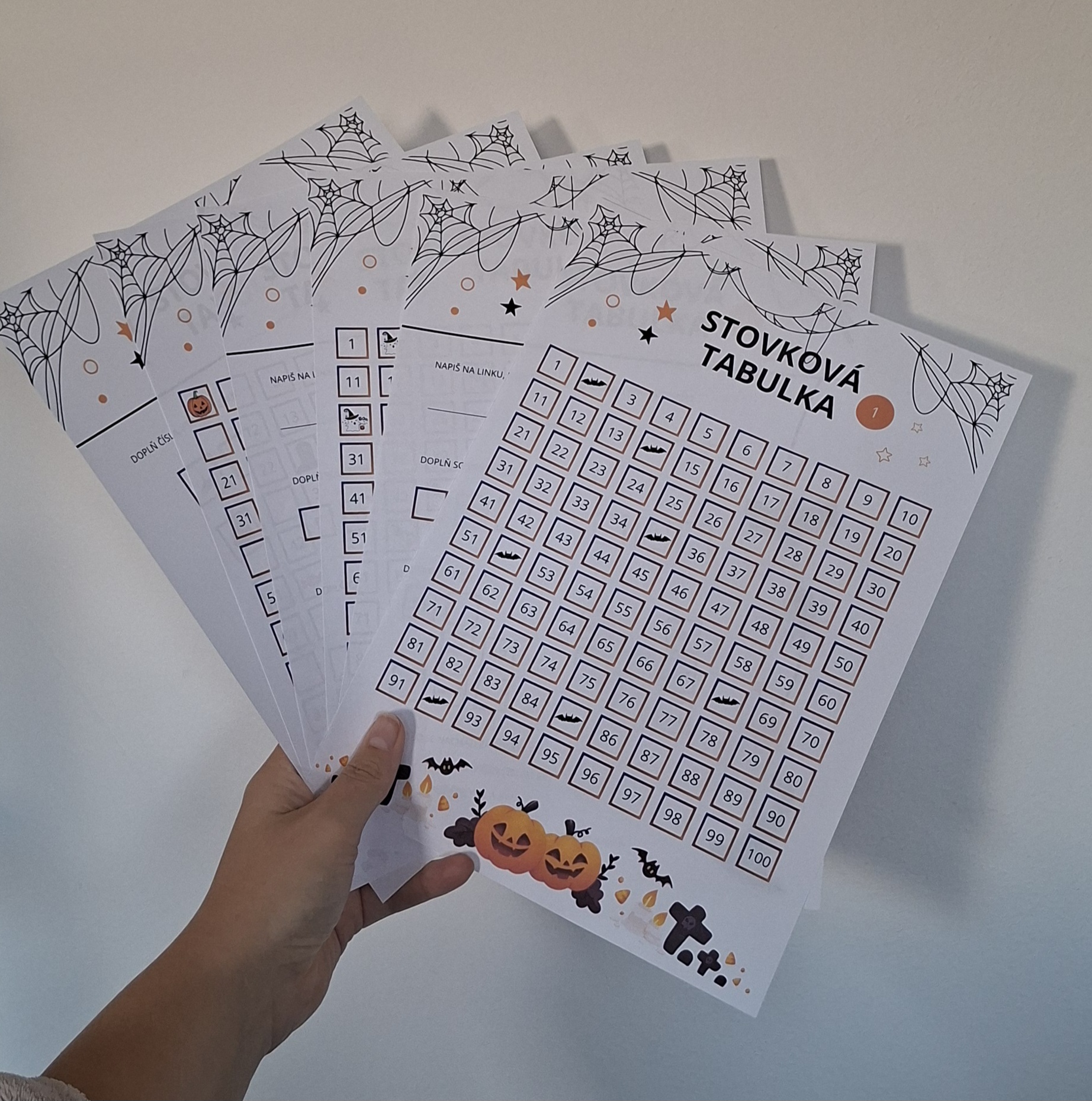- 4 stovkové tabulky (včetně kompletní tabulky pro kontrolu nebo pomoc dětem)