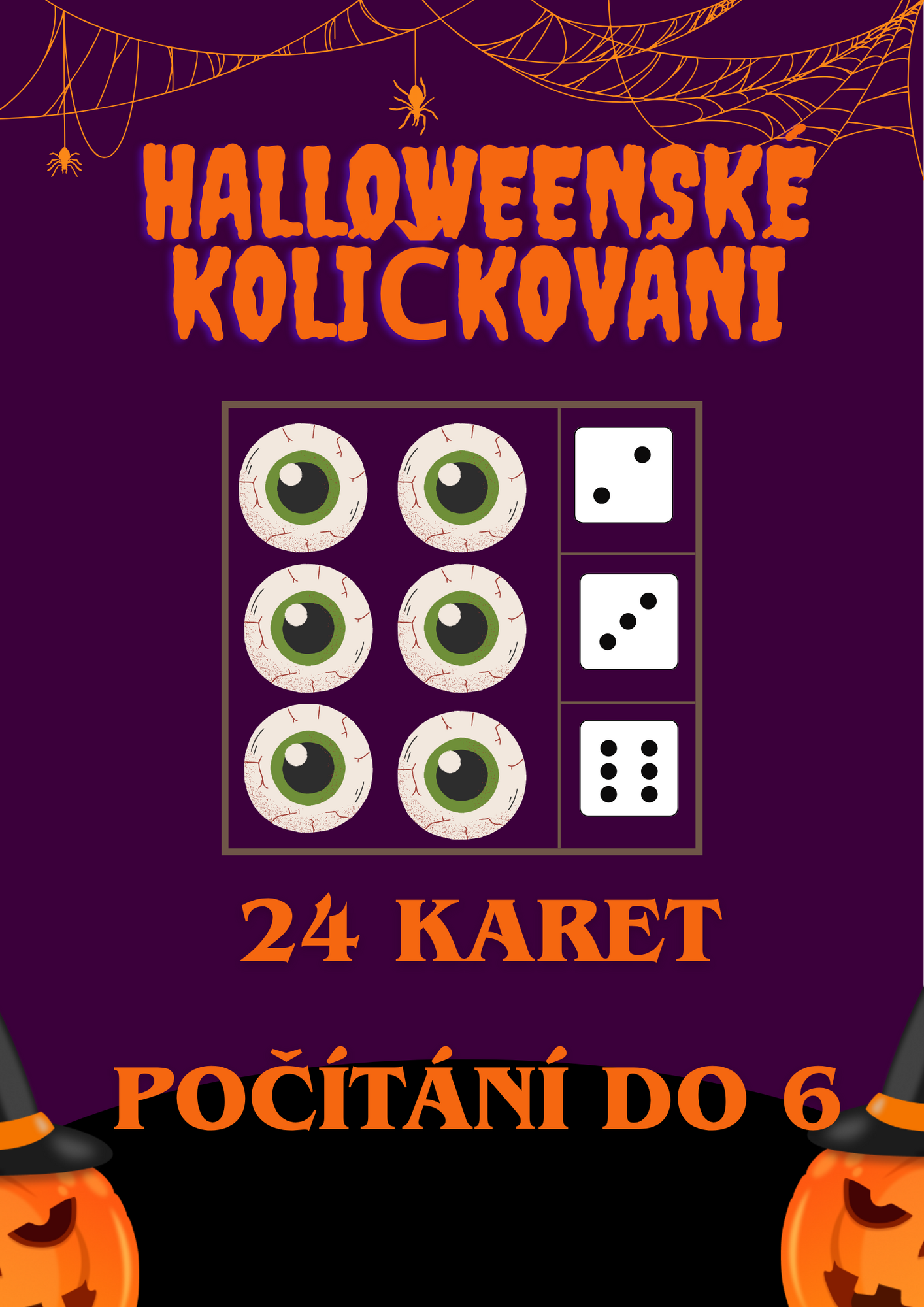 V tomto souboru najdete 24 karet s halloweenskými obrázky, na kterých si děti procvičí počítání do 6. Úkolem je přiložit kolíček ke správnému číslu podle počtu obrázků na kartě!
