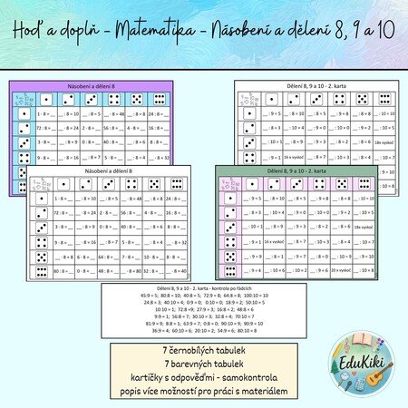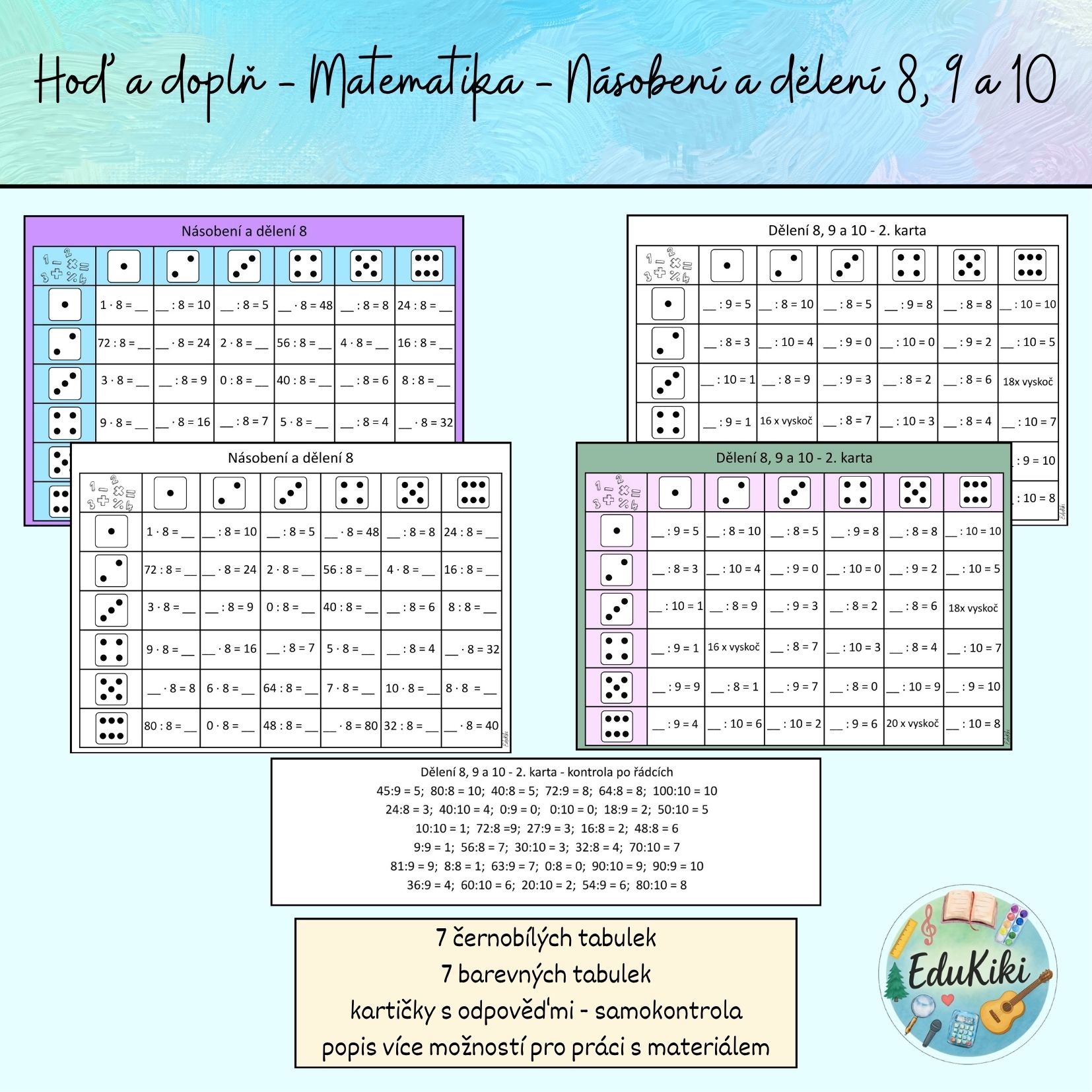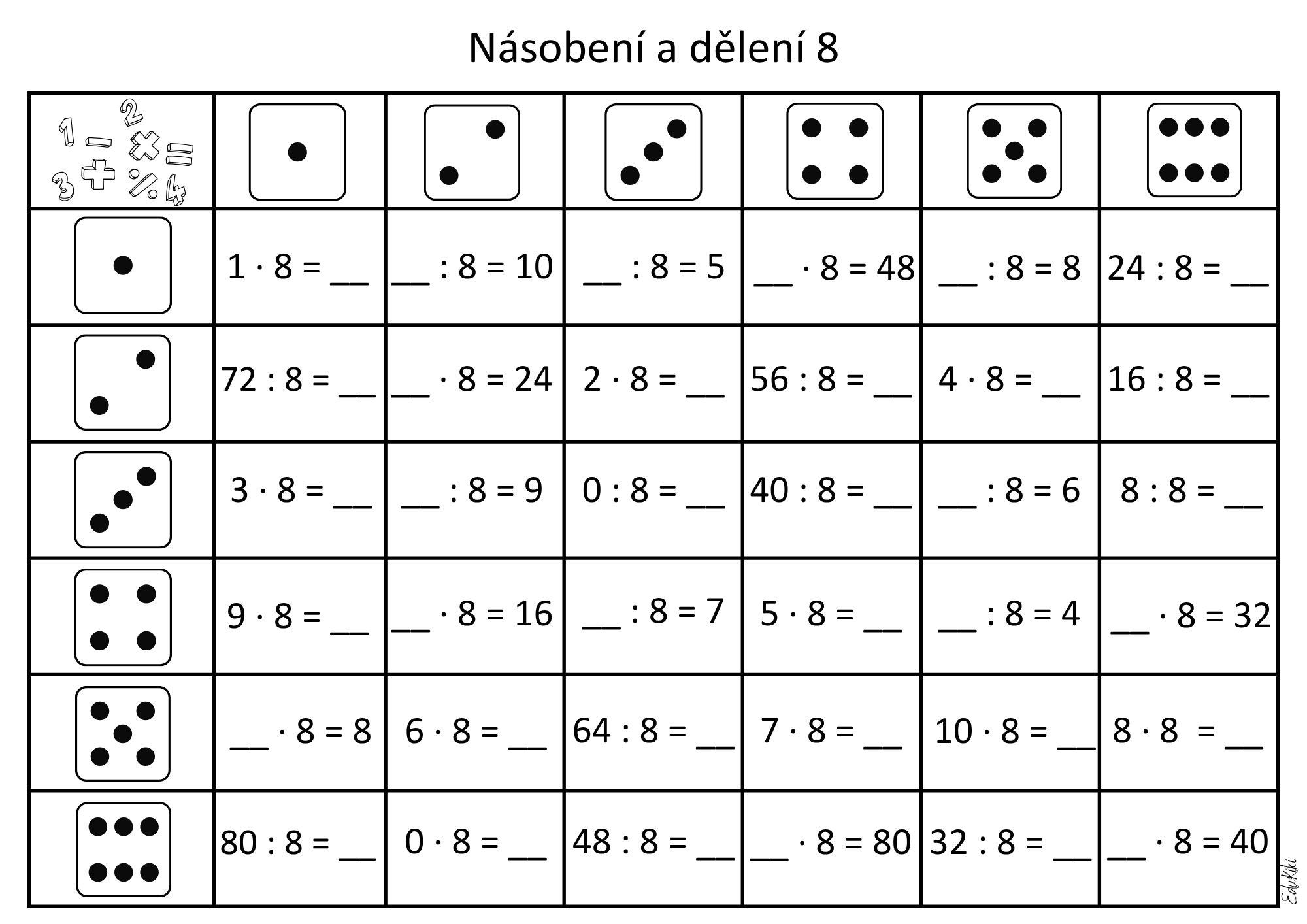 - Stránku vytiskni a zalaminuj (doporučený formát A4). Žáci mohou pracovat samostatně případně ve dvojicích. Žáci hodí kostkami. Jedna kostka představuje číslo řádku a druhá číslo sloupečku. Dle čísel (souřadnic) si žáci najdou příklad, který mají vypočítat. Příklad i s výsledkem zapíšou do sešitu a pokračují dál.