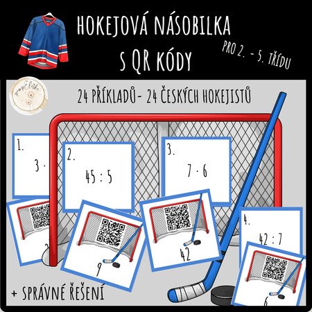 Tento výukový materiál s QR kódy je zaměřen na procvičování násobilky zábavnou a motivační formou na téma čeští hokejisté. Je určen pro žáky 2.–5. ročníku základní školy a podporuje aktivní učení, pohyb i práci s moderními technologiemi.