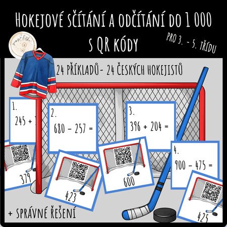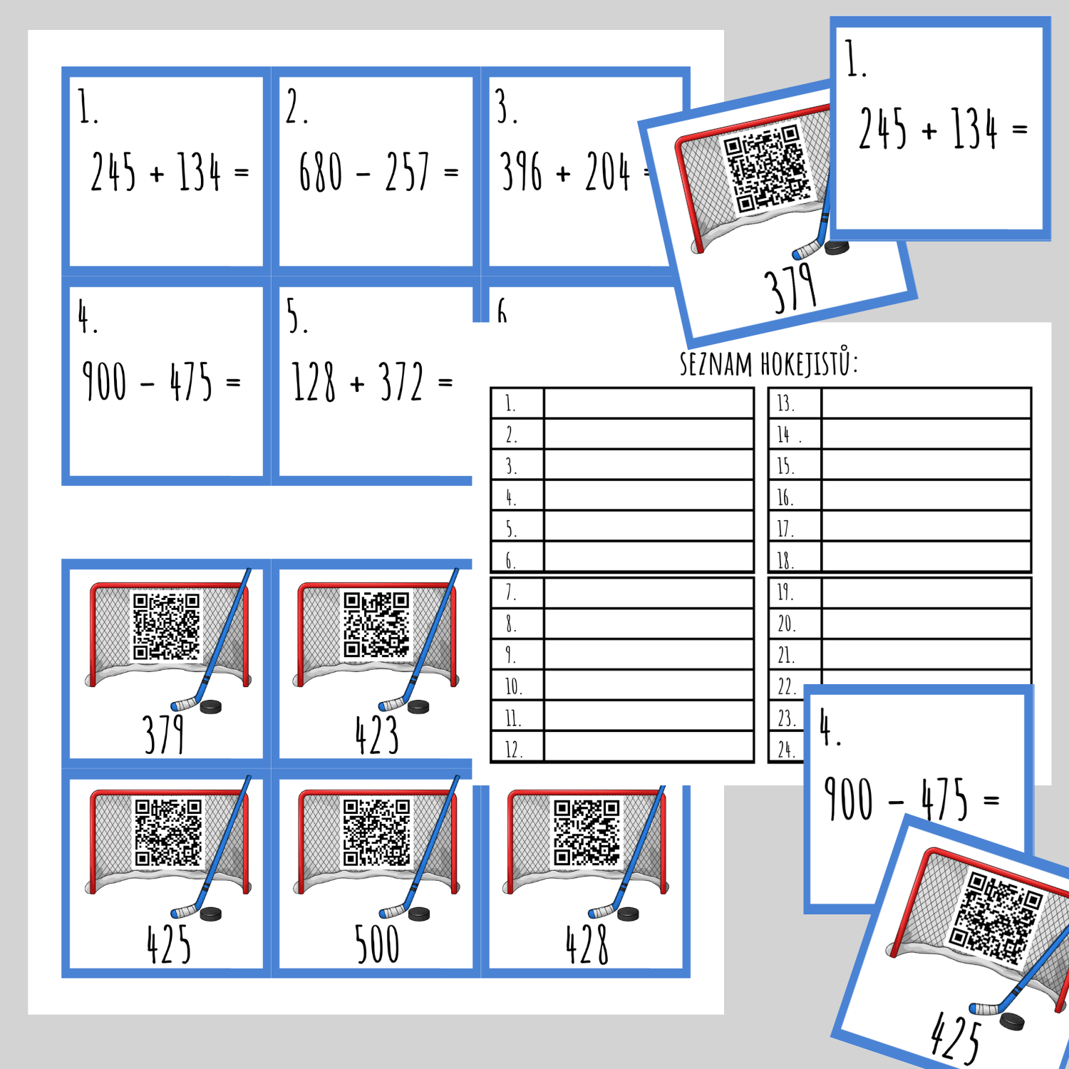 Hokejové sčítání a odčítání do 1 000 s QR kódy