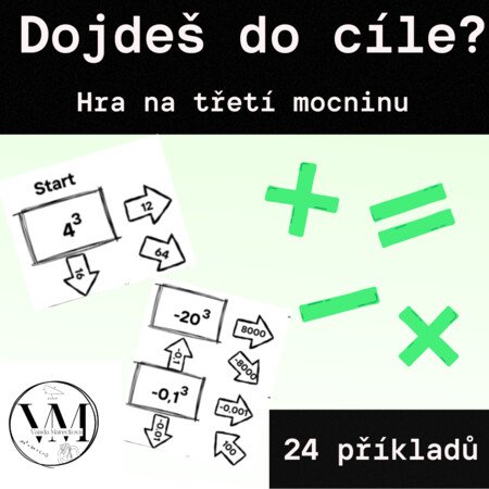 Hra je určena pro žáky 2.stupně ZŠ (8.třída) a je zaměřena na třetí mocninu. Jedna hra obsahuje celkem 24 příkladů. Cílem hry je dostat se od startu do cíle. Po cestě žáci řeší příklady a šipka se správným výsledkem je posune k dalšímu políčku. Hra slouží pro samostatnou práci. Může být zařazena do běžné vyučovací hodiny k procvičování nebo jako aktivita navíc pro rychlejší žáky.