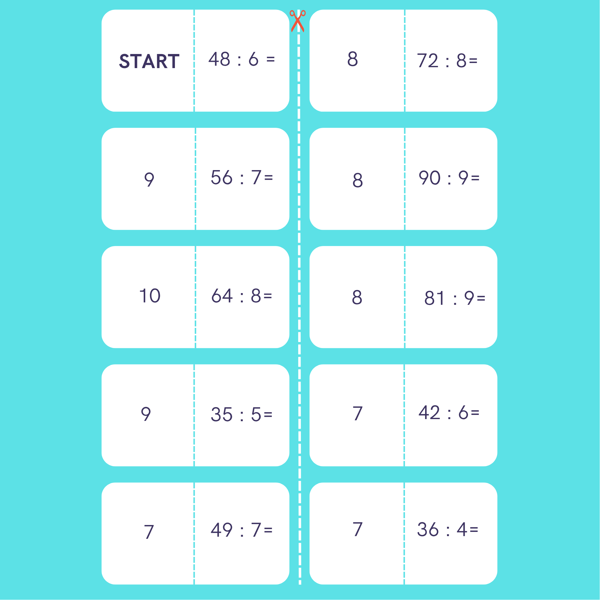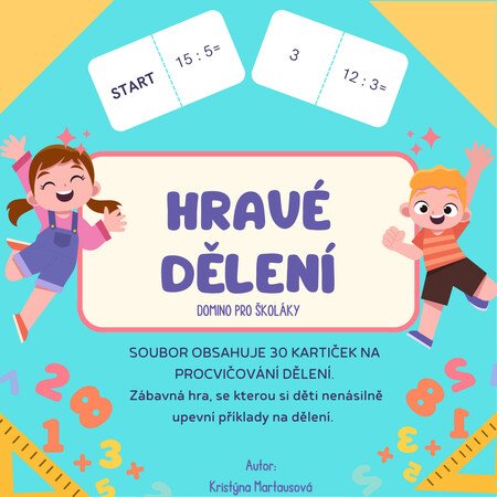 Soubor obsahuje 30 kartiček, díky kterým si děti jednoduše a zábavně procvičí dělení. Hra podporuje logické myšlení, koncentraci a upevňuje znalosti dělení bez stresu a nudy. Kartičky lze hrát jako domino nebo klasické párování příklad – výsledek, takže je to ideální forma zábavy i učení zároveň.