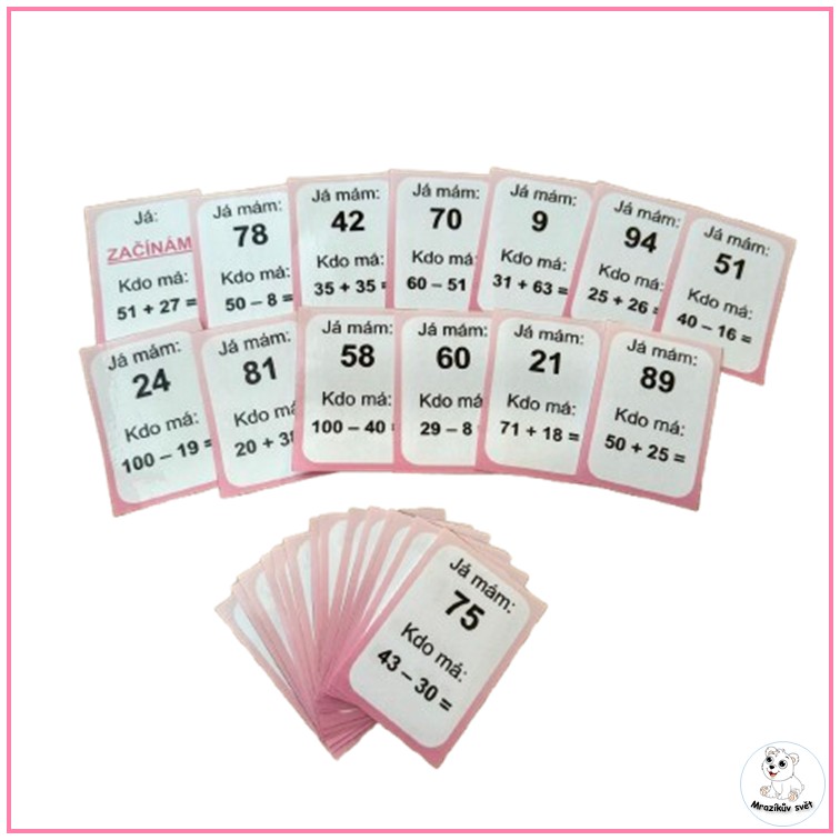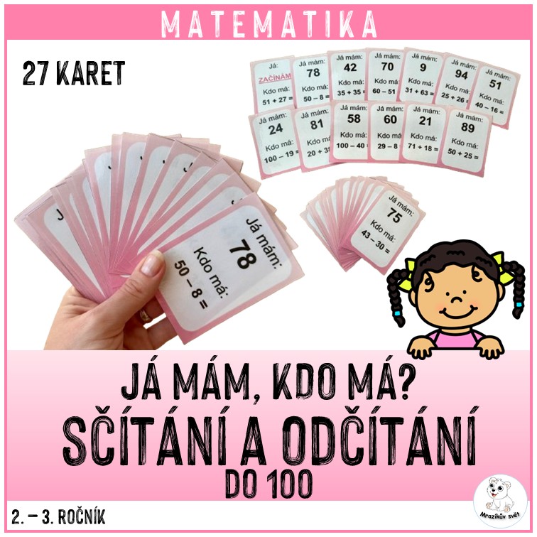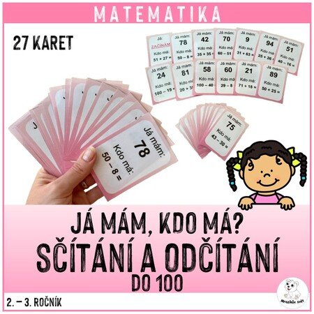 Hra Já mám, kdo má? je zábavná řetězová hra, která se hodí k procvičování učiva – konkrétně k procvičení sčítání a odčítání zpaměti do 100.