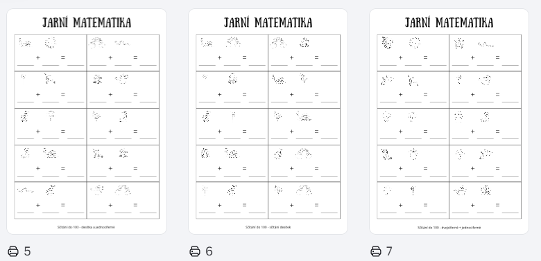 - 15 pracovních listů (5 na sčítání, 5 na odčítání, 5 na sčítání a odčítání)