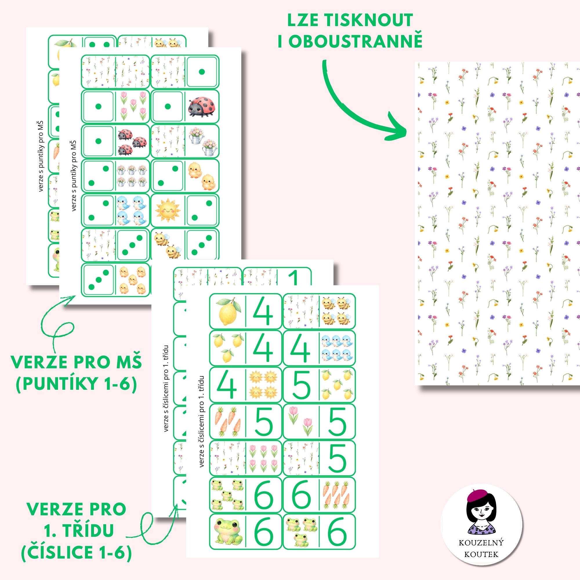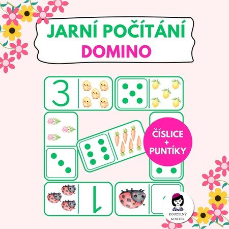 Jednoduchá a zábavná hra s jarní tematikou pro děti v mateřské škole (verze s puntíky) a první třídě (verze s číslicemi). Děti při ní přiřazují kartičky s daným počtem symbolů k číslici/puntíkům.