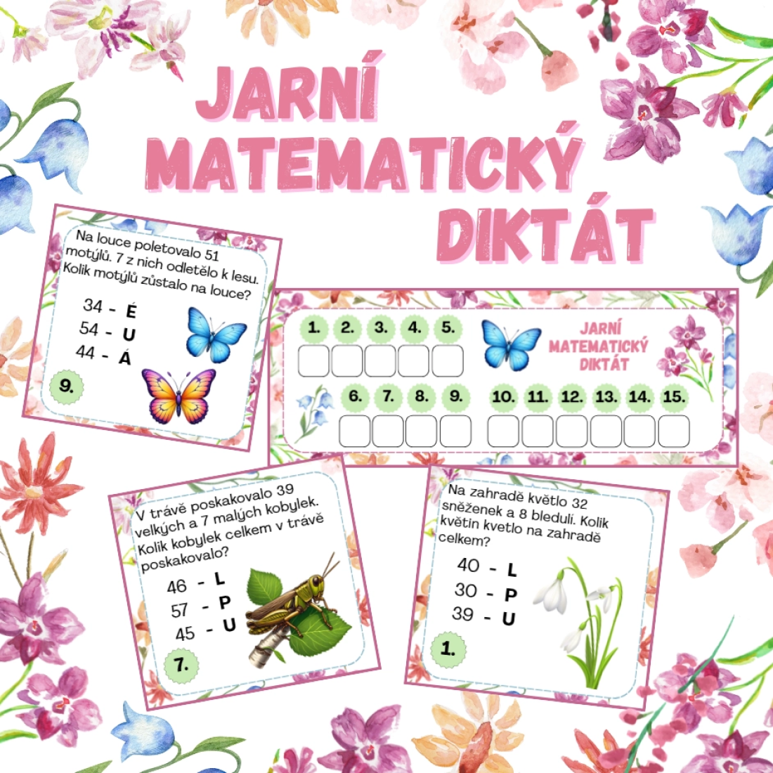 - 15 karet se slovními úlohami zaměřenými na sčítání a odčítání do 100.