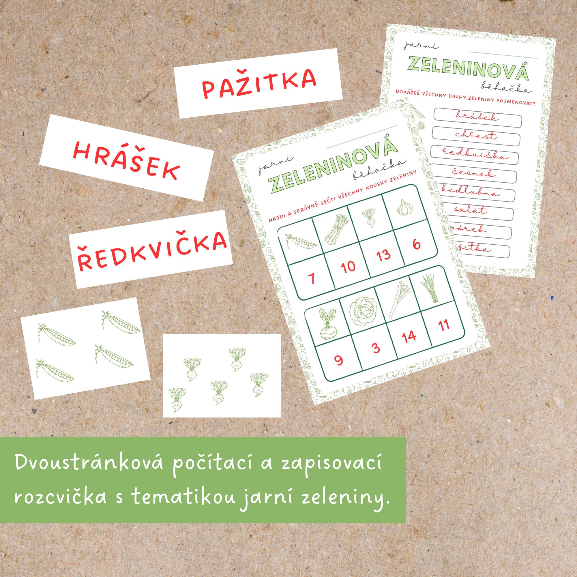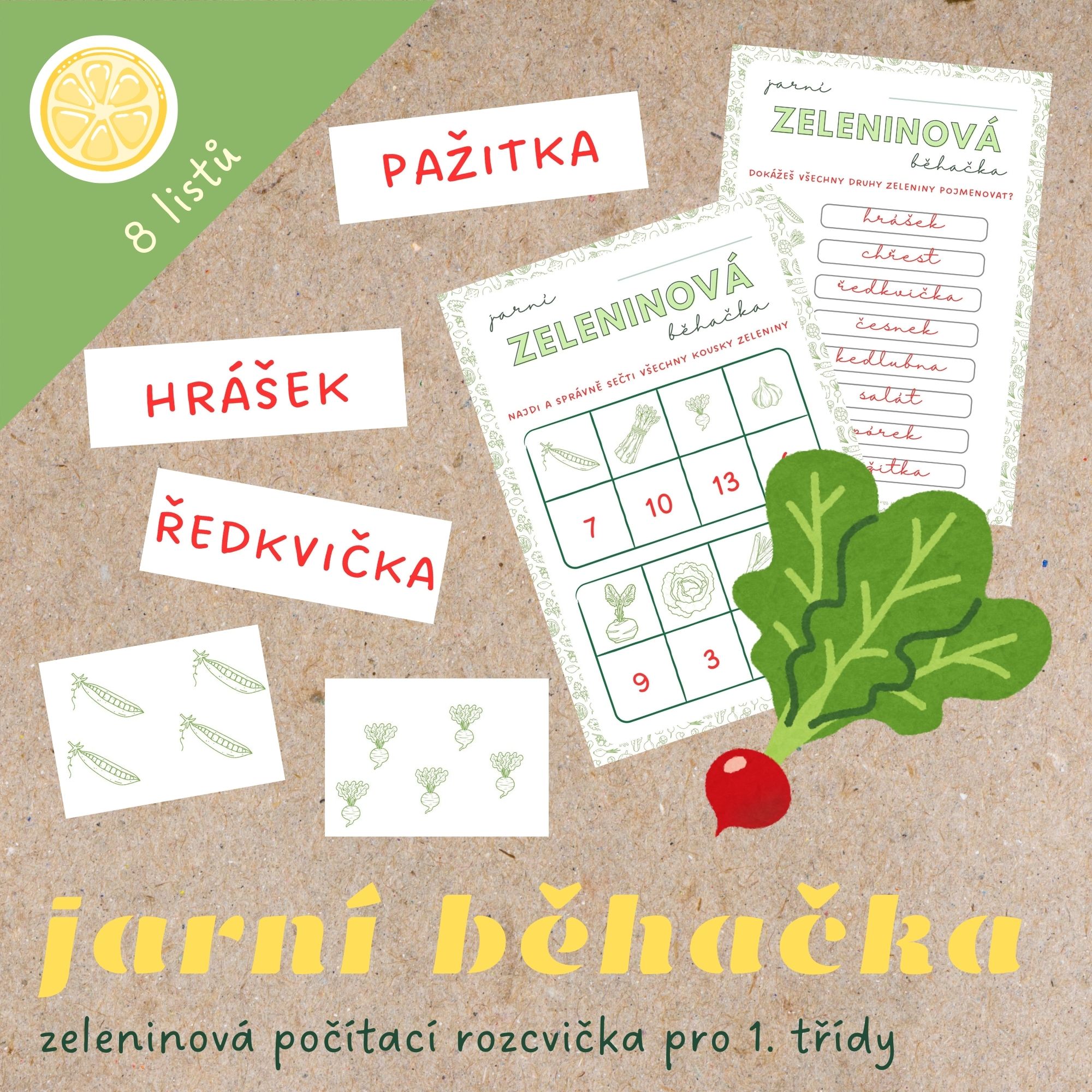 S příchodem teplejších dnů není nic příjemnějšího, než si hodinu matematiky zpestřit trochou pohybu, ať už na čerstvém vzduchu nebo po školní chodbě. Tematická běhačka děti naladí na jaro a připomene jim některé druhy jarní zeleniny.